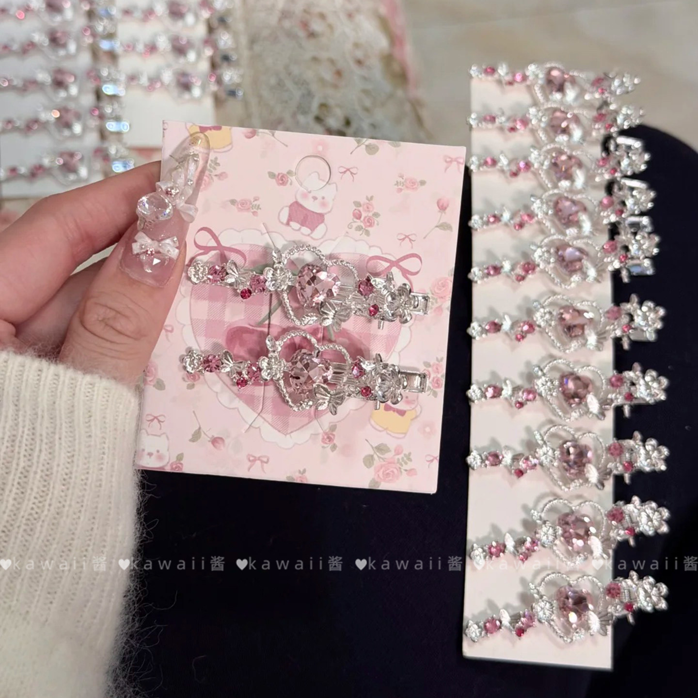 甜美少女风粉色爱心水钻发夹小众设计感侧边夹刘海夹气质发卡发饰