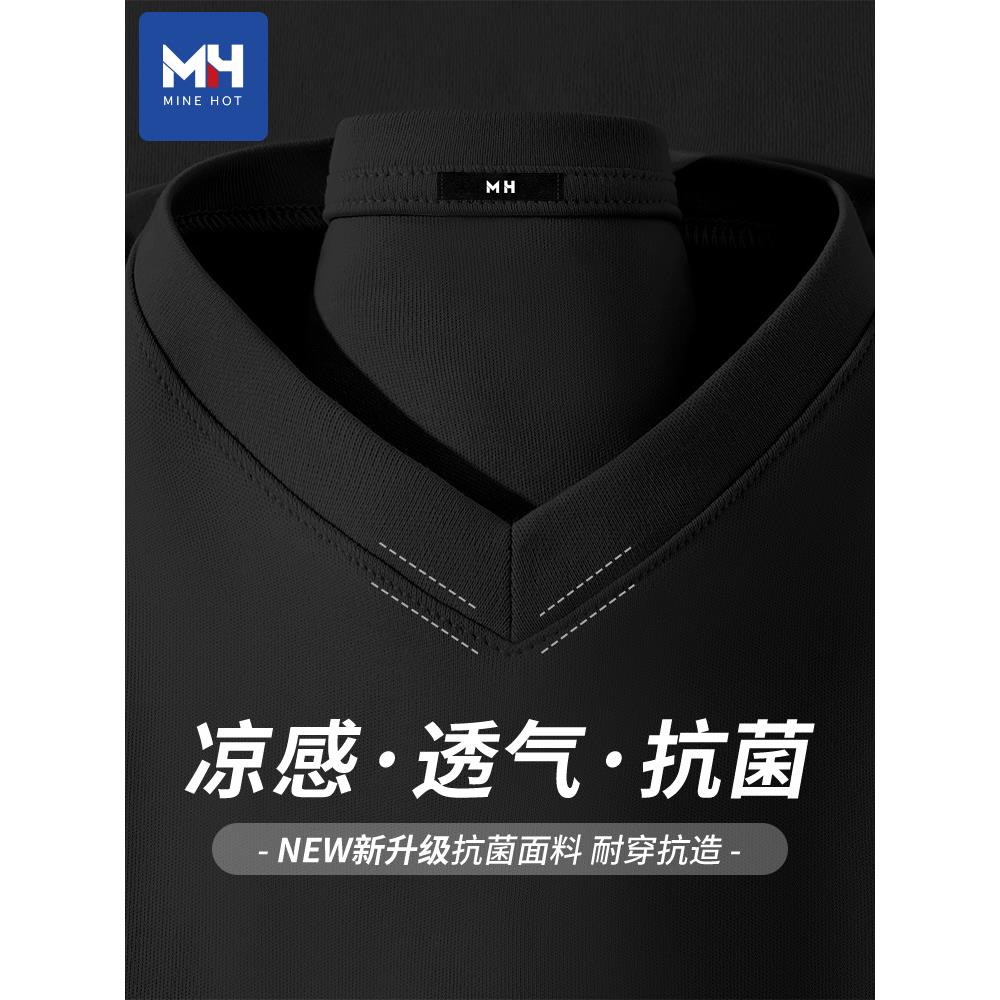 唐狮集团MH冰丝短袖t恤女2025新款夏季v领抗菌正肩半袖大码上衣女