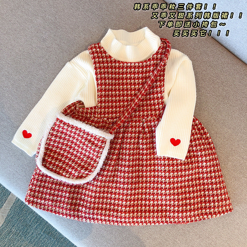 女童连衣裙秋冬2025冬装洋气红色新年装两件套时髦宝宝套装背心裙