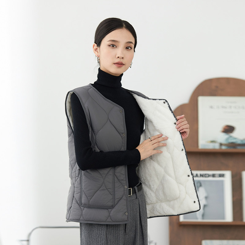短款马甲通勤单排扣V领