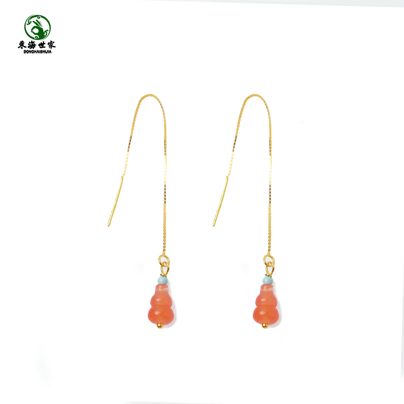 南红耳线女国潮风高级感新中式东海水晶耳钉红玛瑙葫芦s925银耳饰