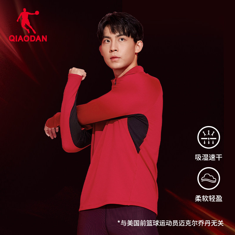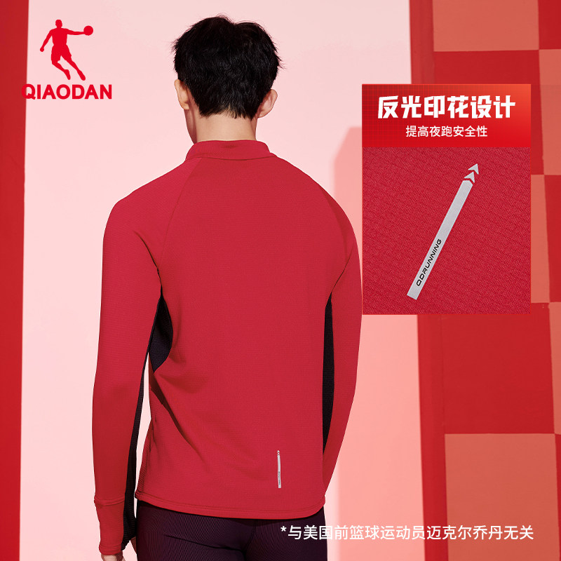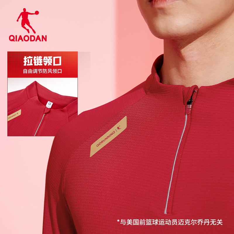 乔丹跑步长袖T恤衫男士2026春季新款运动透气半拉链速干健身上衣