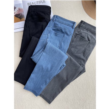 新意大利C家提臀冰丝亚麻四面弹力高腰紧身显瘦黑灰小脚裤女薄款