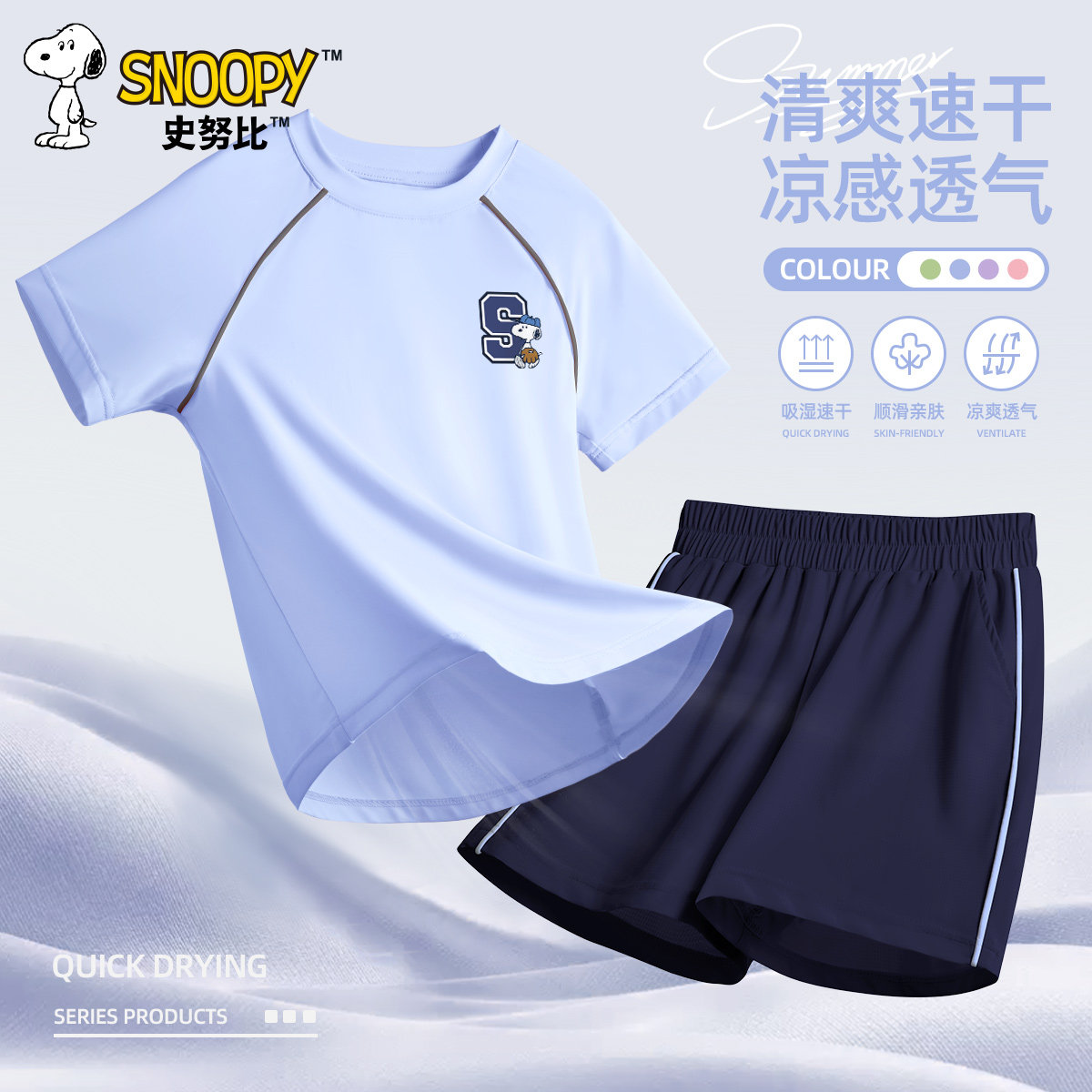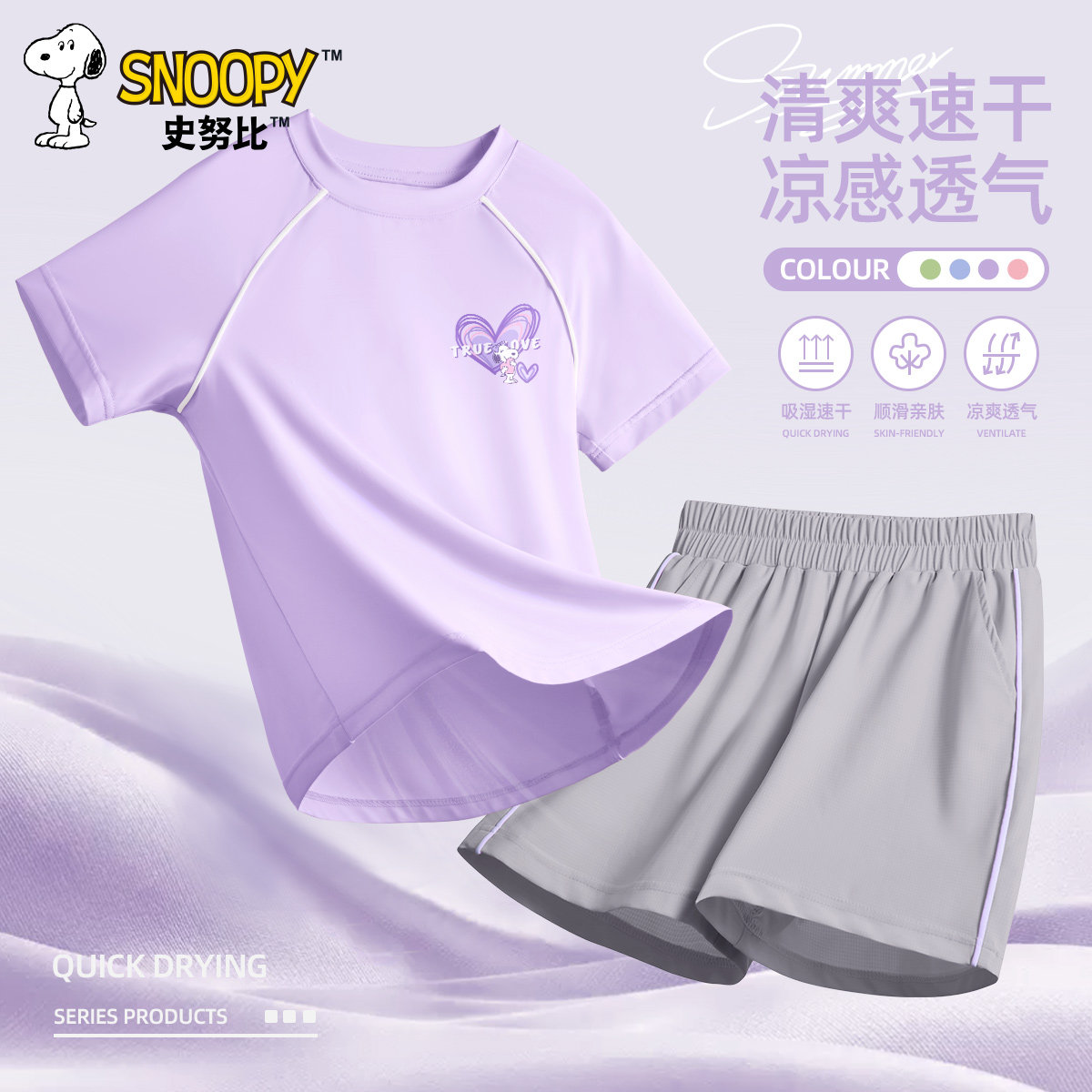 史努比儿童夏季套装2026新款女童速干短袖短裤薄款男童运动两件套