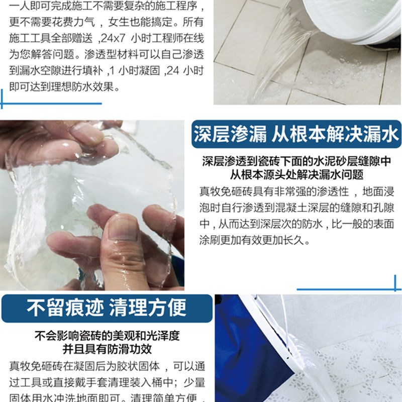 卫生间防水渗透剂免砸砖材料透明纳米涂料瓷砖地面厕所漏水补漏胶