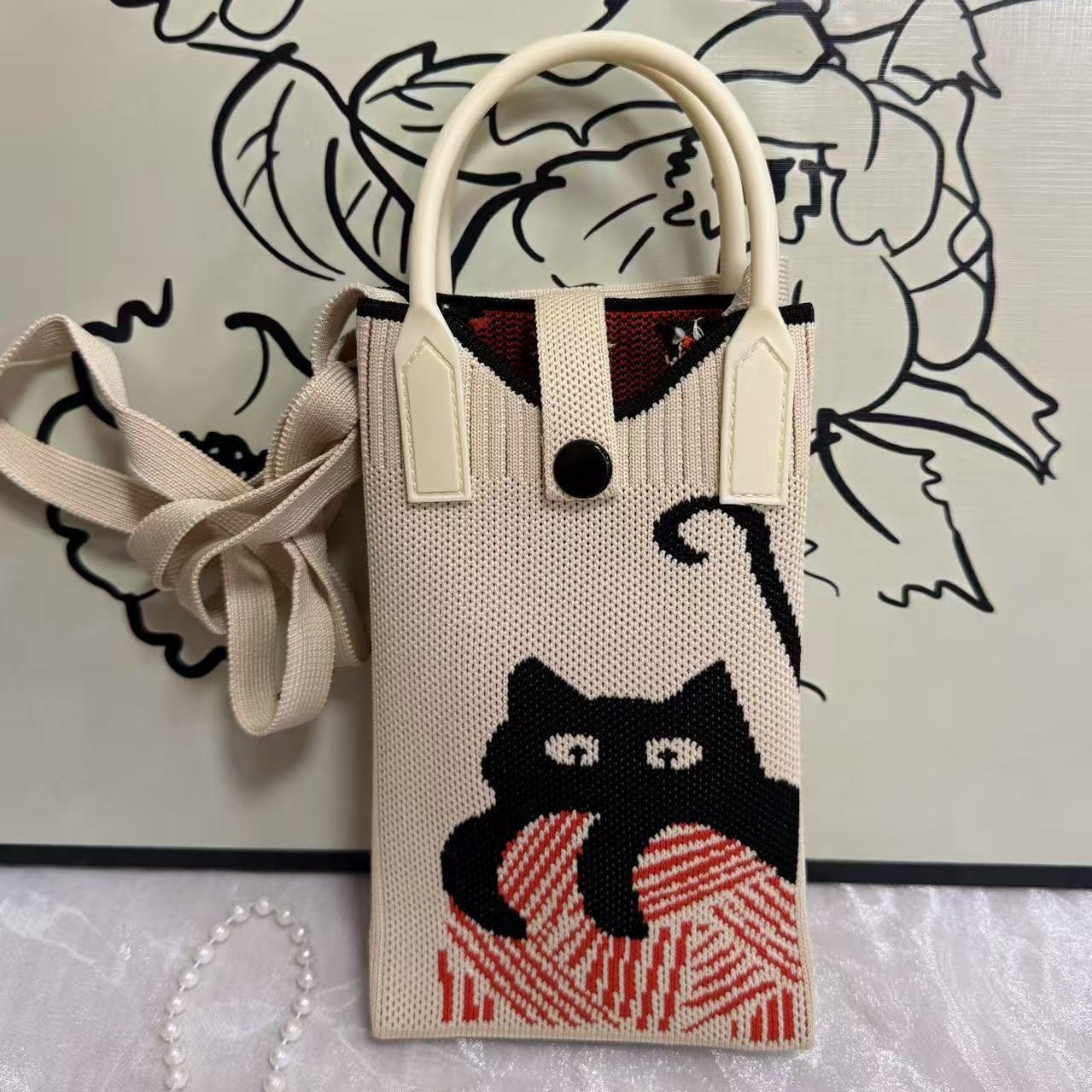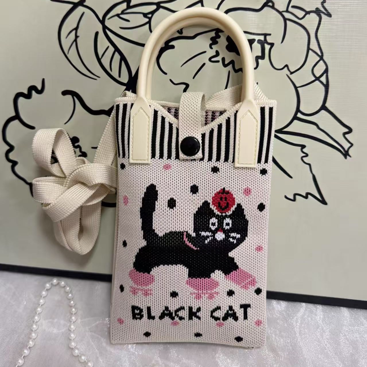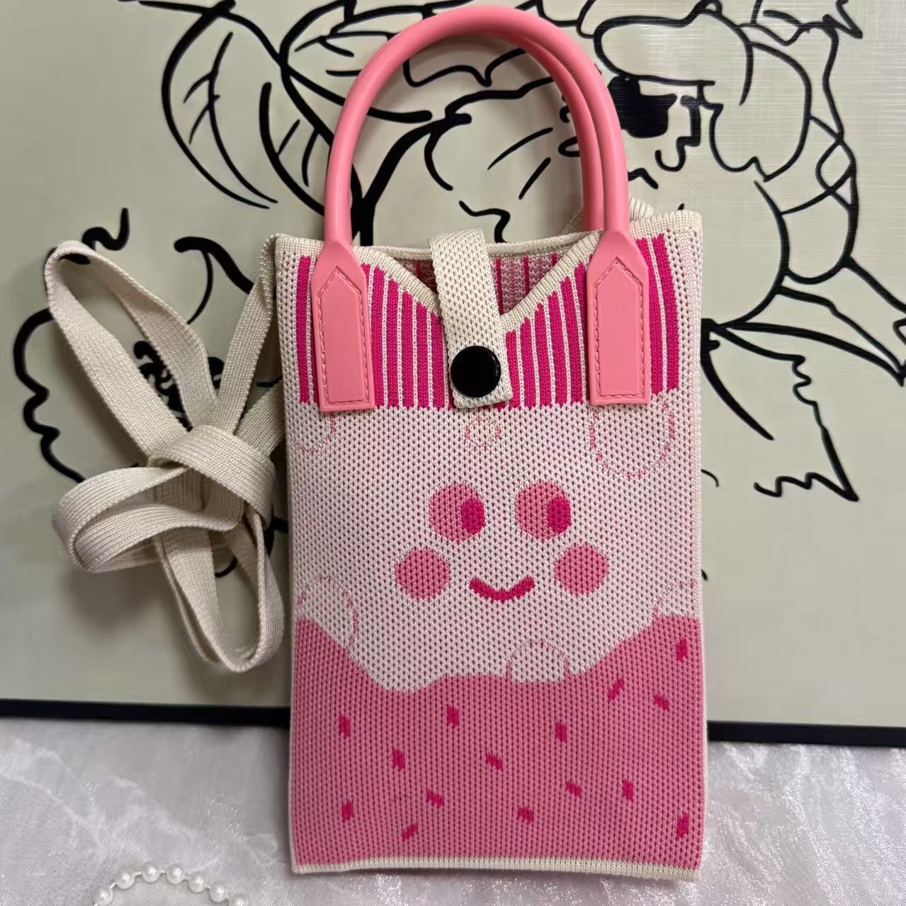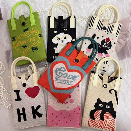 新款可爱卡通针织手机包女韩版百搭单肩斜跨包出游零钱包小