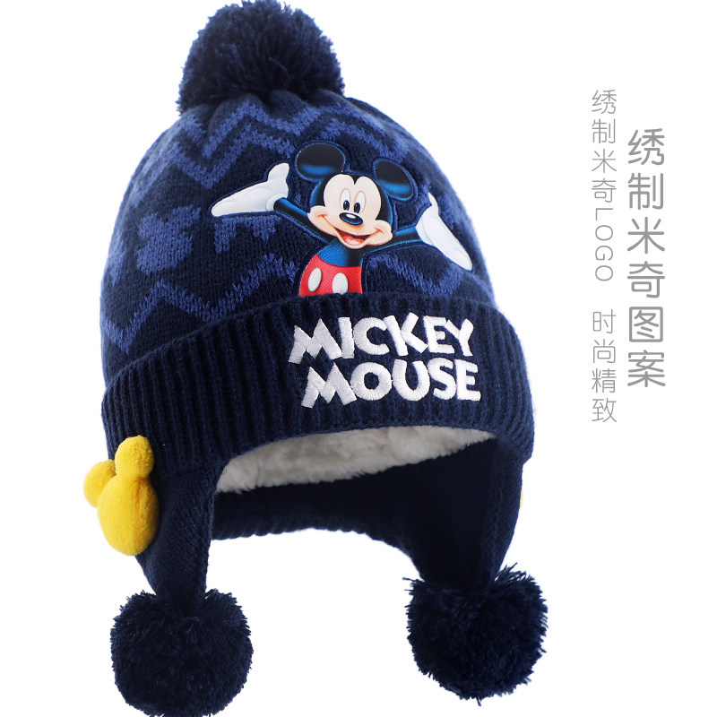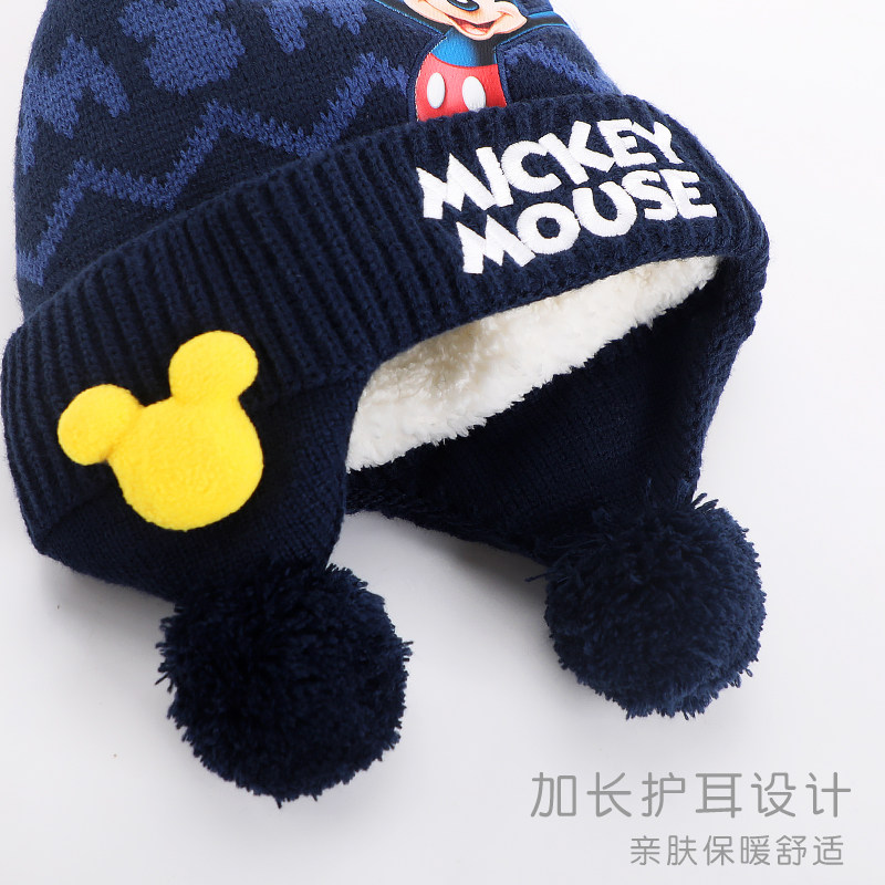 迪士尼儿童帽子保暖宝宝护耳帽冬天小孩男童毛线帽米奇男孩针织帽