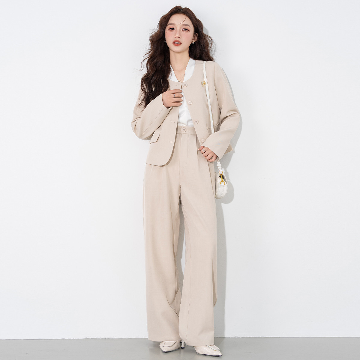 班尼路短款小香风套装女秋冬纯色高级感西服套装西装西裤两件套J