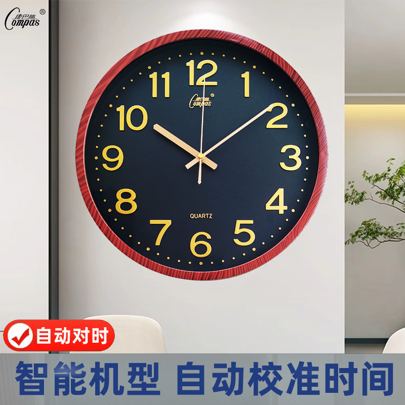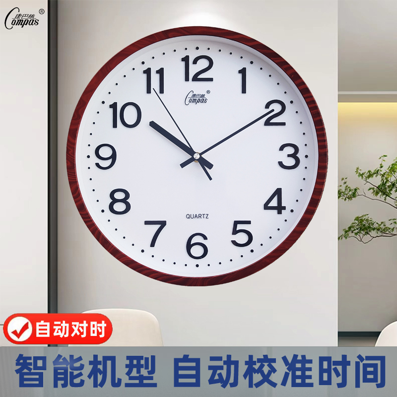 康巴丝客厅挂钟自动对时电子钟表家用挂墙挂表现代简约时钟石英钟