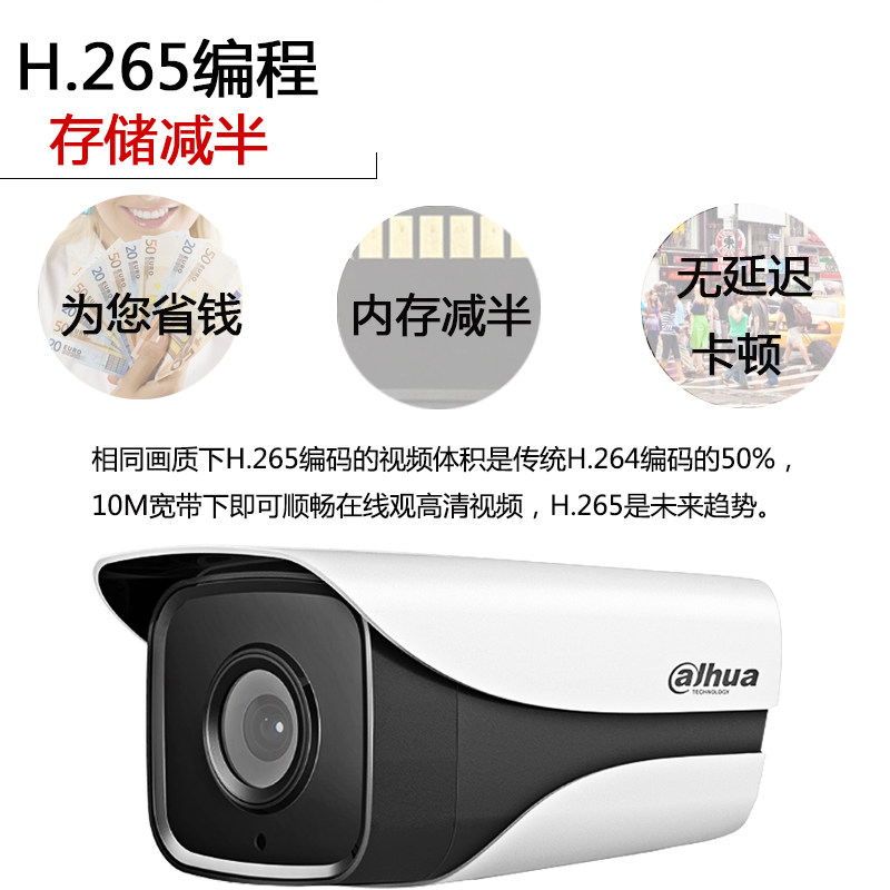 大华200万监控摄像头高清夜视H.265网络摄像机室外防水1235M-A-I2