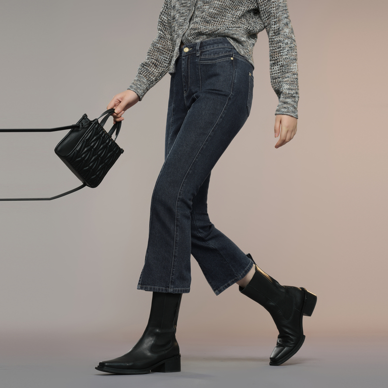 XG雪歌灰蓝色修身设计牛仔裤2025秋季新款微弹设计开叉微喇长裤女