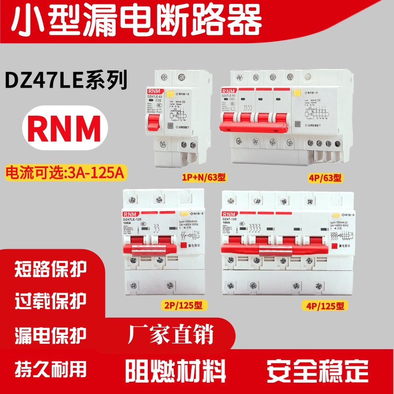 小型漏电断路器DZ47LE-63 125 1P+N 2P3P3P+N 4P断路保护空气开关