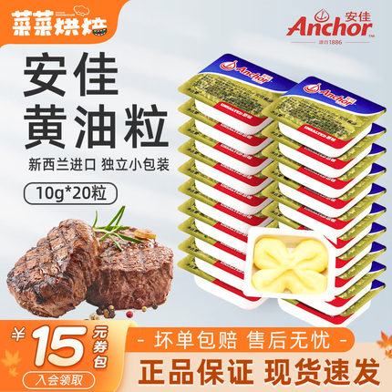安佳淡味黄油粒10g*20粒烘焙家用小包装煎牛排专用动物butter