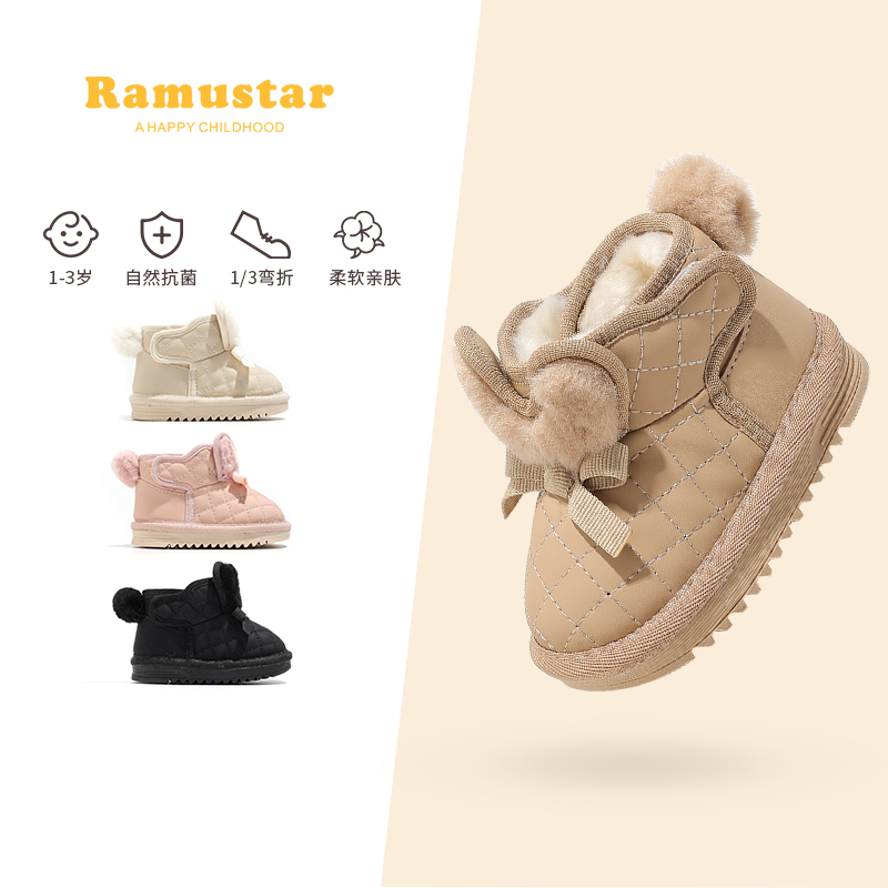 女宝雪地靴冬季公主鞋加绒女童鞋子保暖婴儿鞋加厚棉鞋女宝宝冬鞋