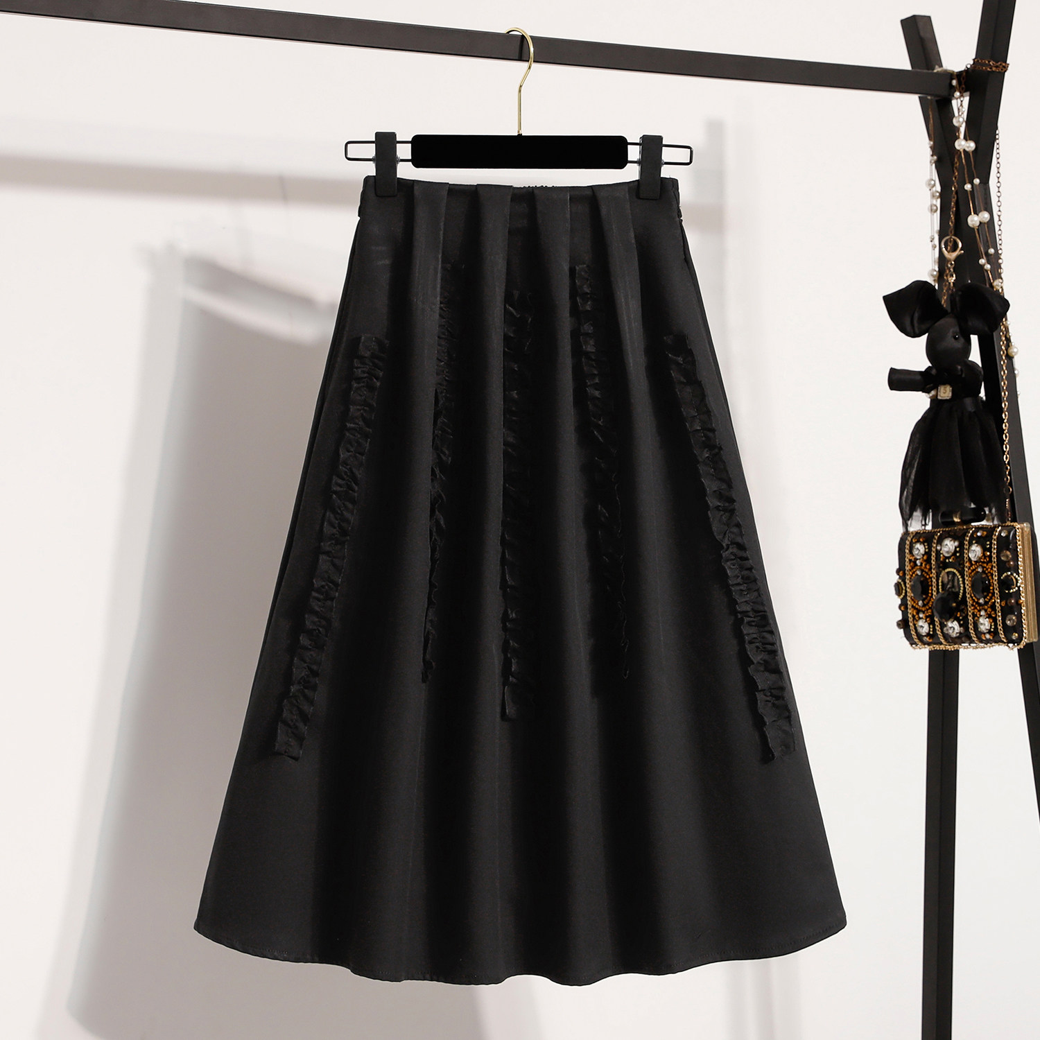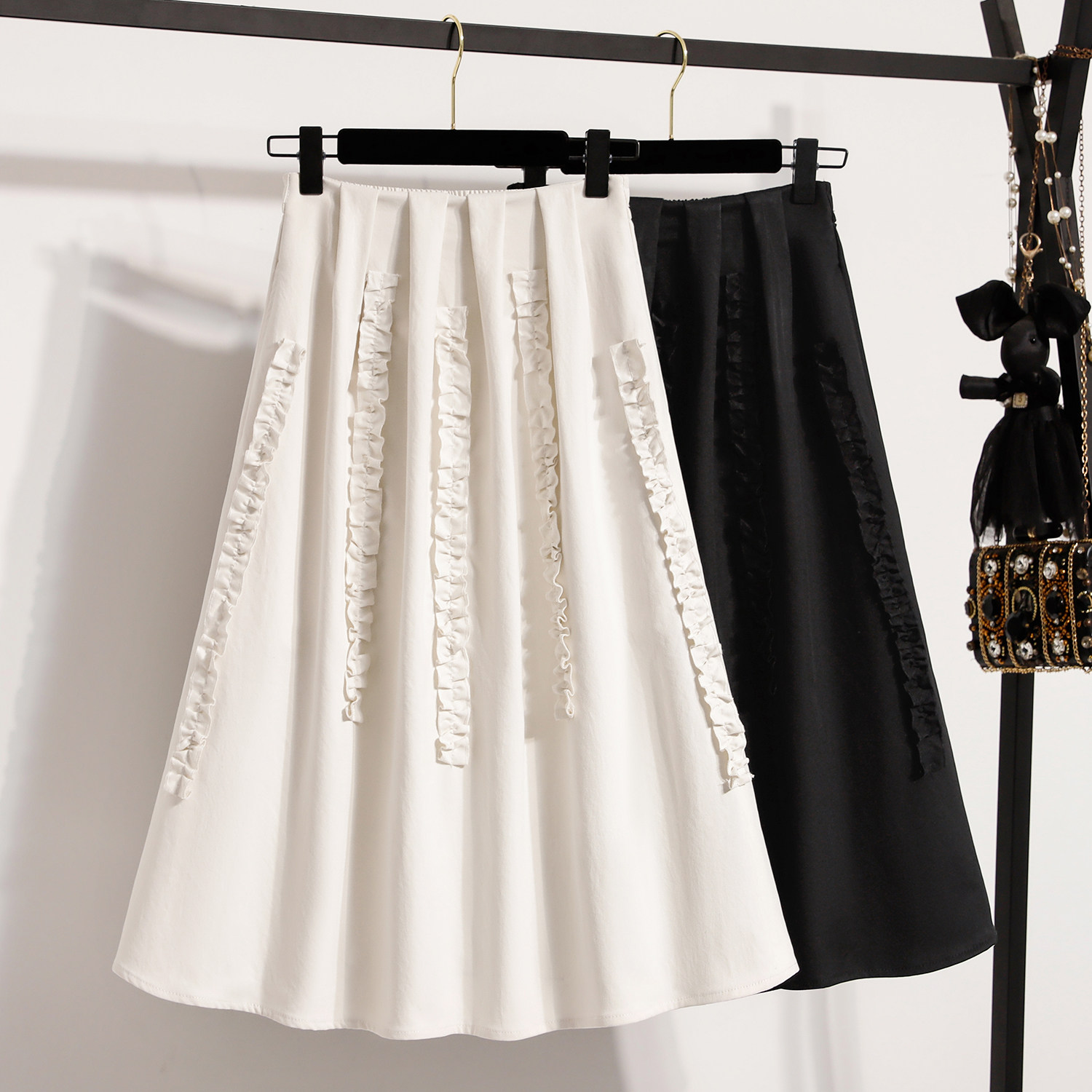 玖月春夏新款大码女装宽松蕾丝A字半身裙胖MM显瘦中长款休闲裙