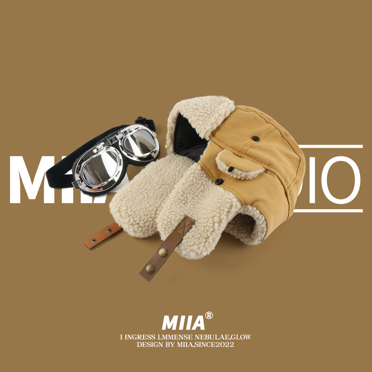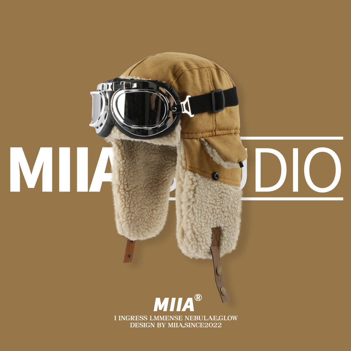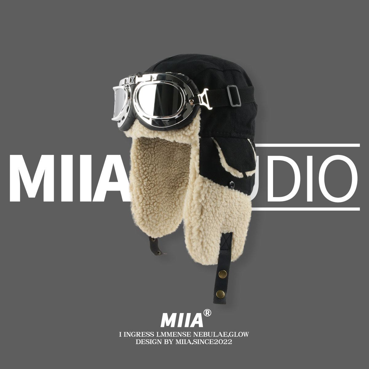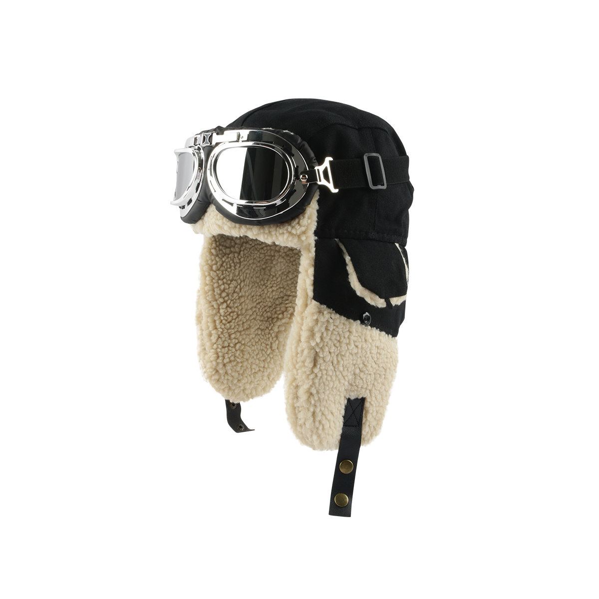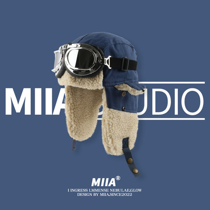 韩国秋冬保暖帆布拼接羊羔毛雷锋帽子女飞行员墨镜滑雪护耳帽男潮