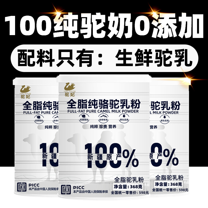 100%纯骆驼奶粉新疆正宗驼妃368g学生中老年人免疫力全脂高钙驼乳