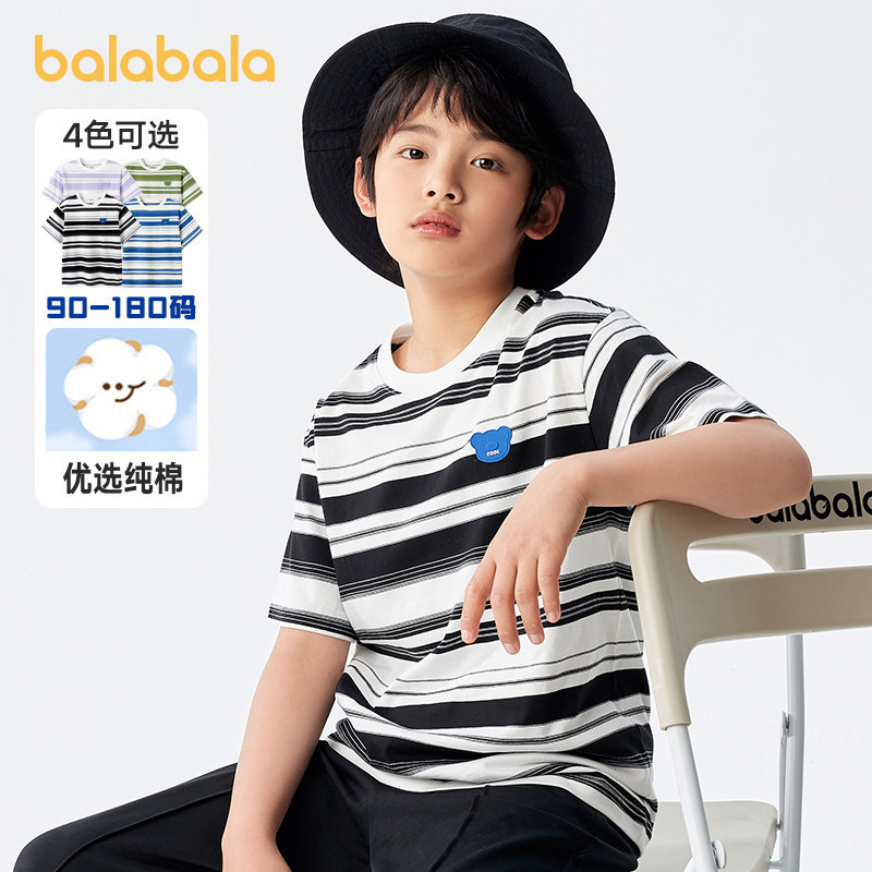 巴拉巴拉男童女童短袖t恤中大童纯棉打底衫条纹上衣夏装新款童装