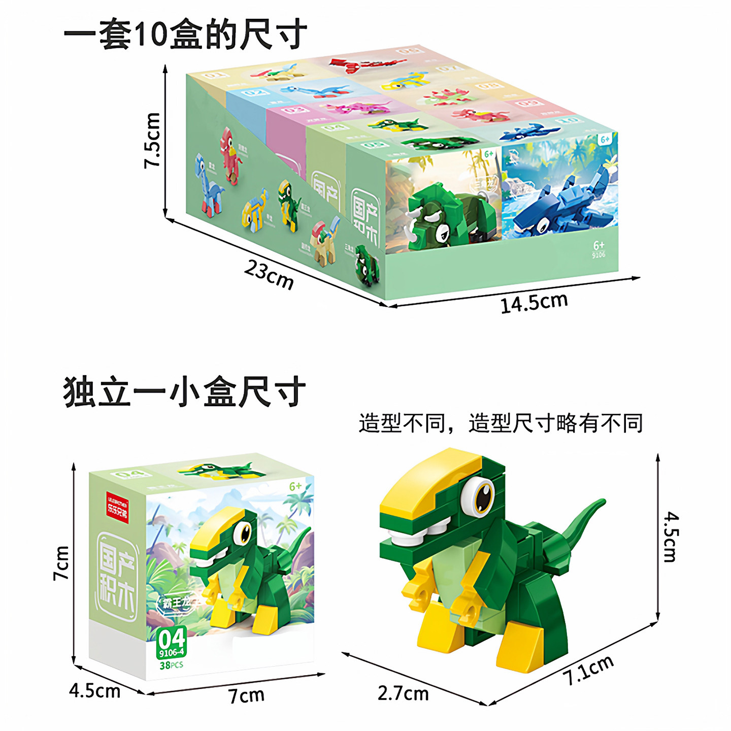 儿童小颗粒恐龙积木男孩益智力拼装玩具动物世界10合一套装礼物女