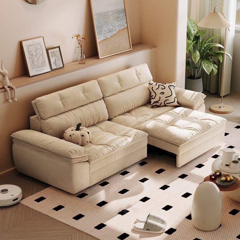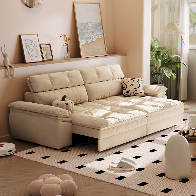 品洛巨无霸电动沙发直排奶油风猫抓布客厅遥控伸缩沙发床