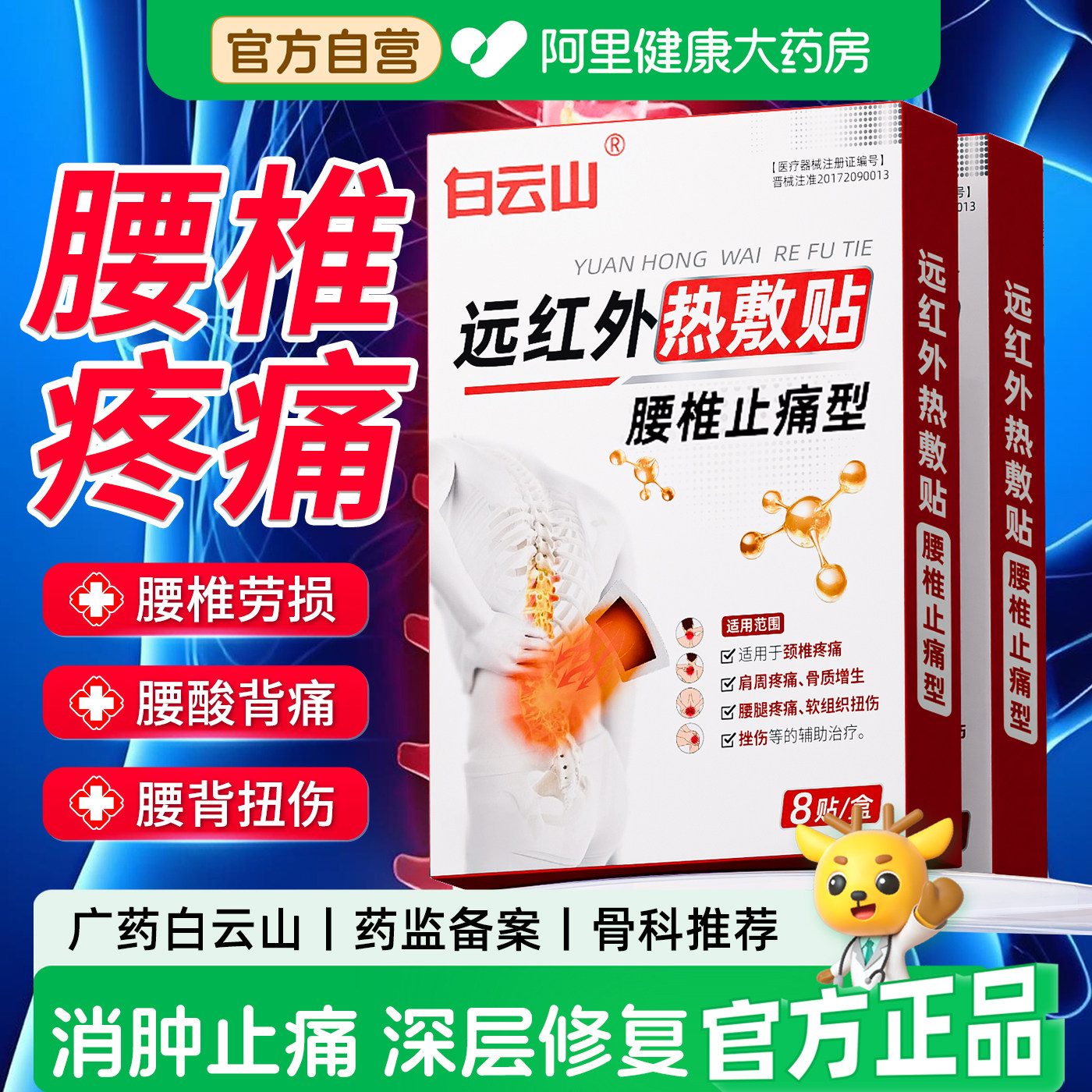 白云山远红外腰椎治疗贴腰椎间盘突出腰腿疼痛止痛腰肌劳损膏药贴