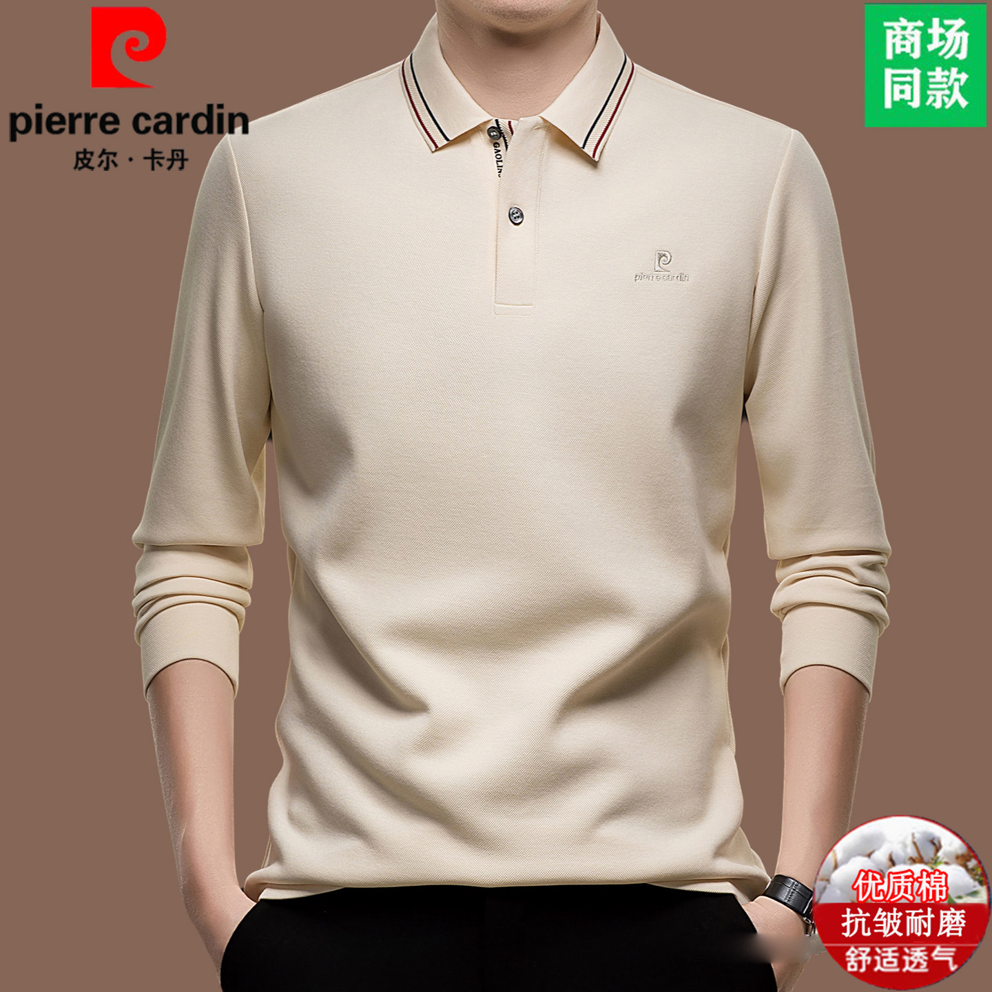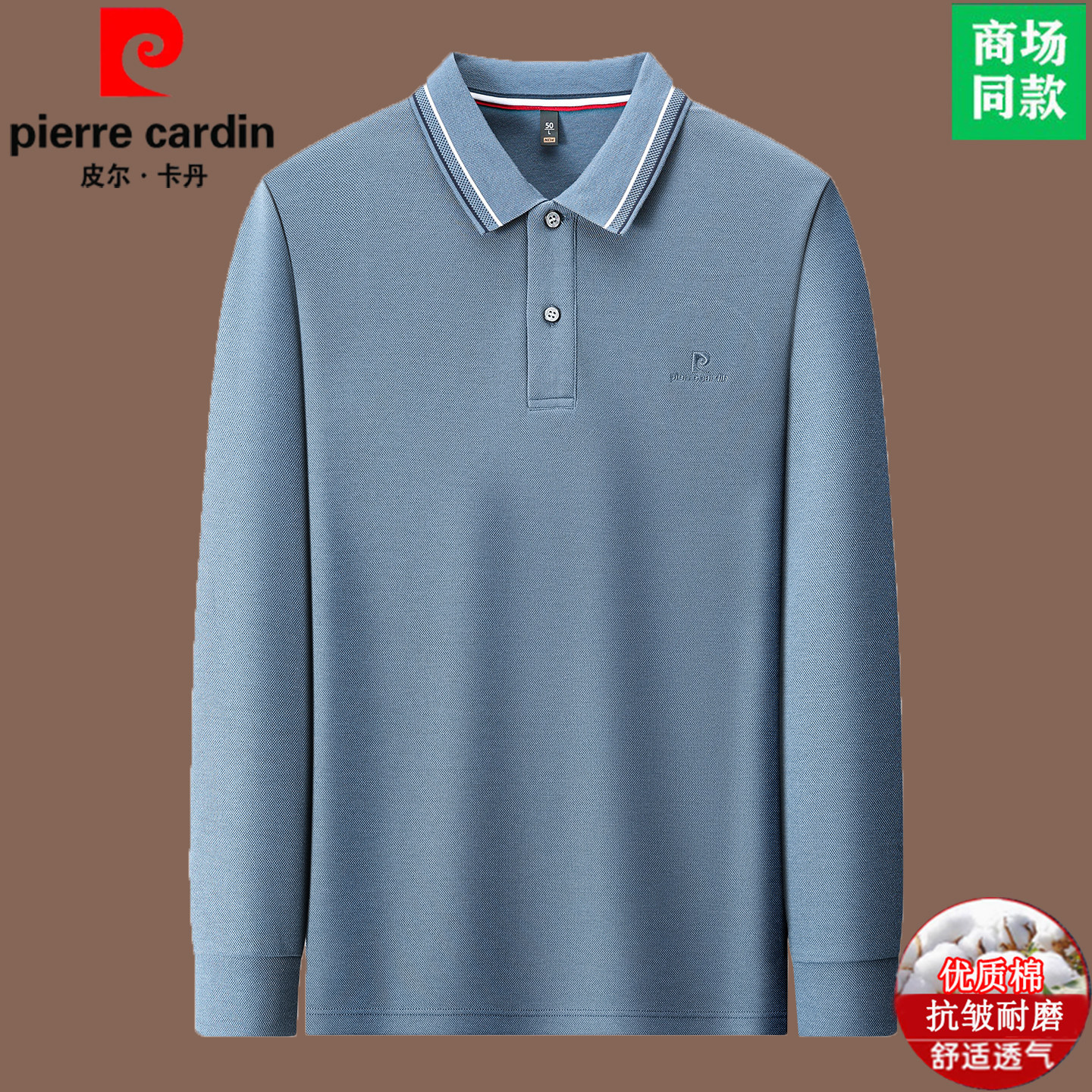 皮尔卡丹长袖T恤男士高端商务休闲中年翻领polo衫时尚百搭爸爸装