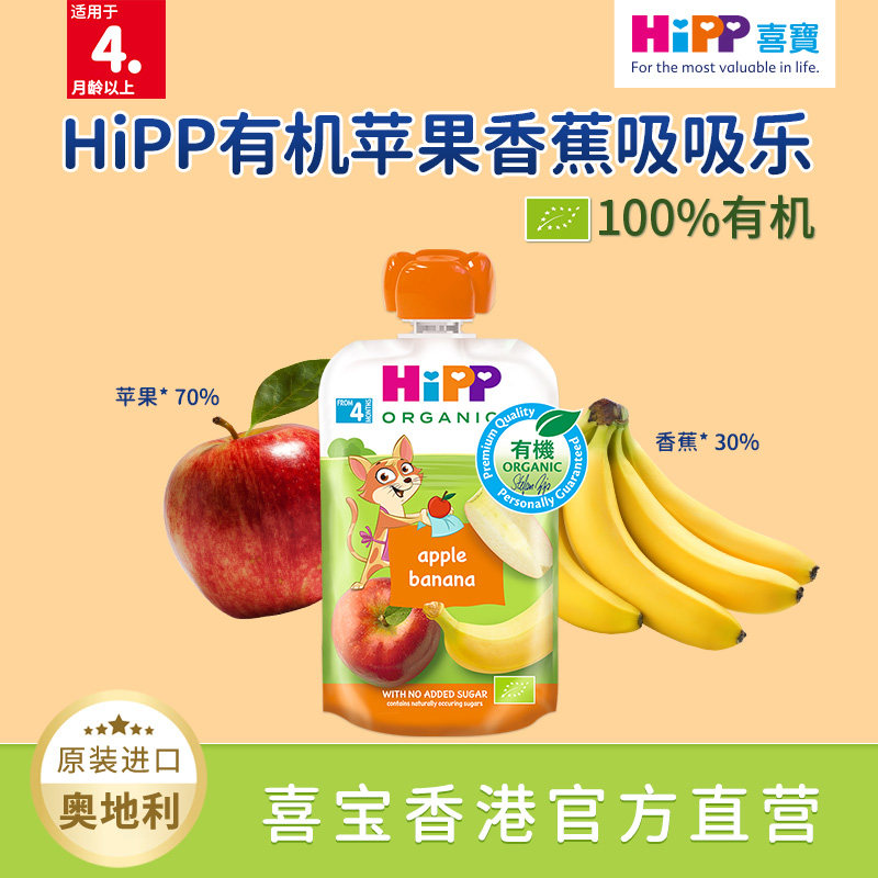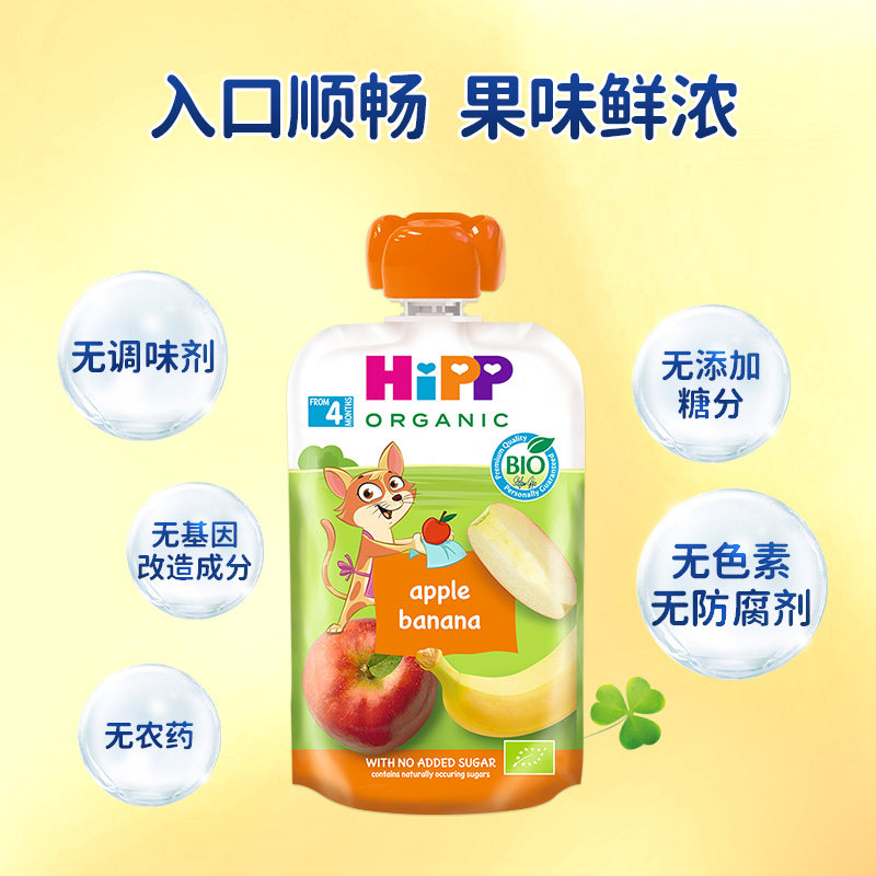 HiPP喜宝有机苹果香蕉水果泥 婴幼儿4个月营养辅食零食吸吸乐