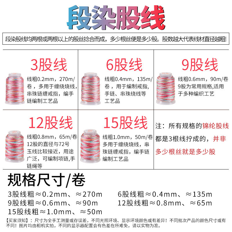 段染股线五彩绳diy材料3/6/9/12/15股编手绳手链手工彩色编织绳线