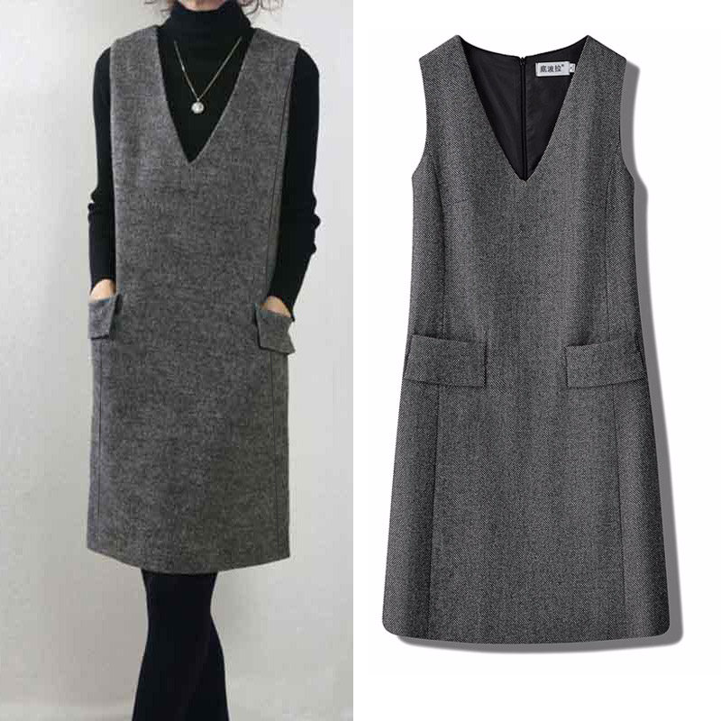 V领背心裙秋冬2025新款高端气质小个子马甲a字无袖羊毛呢连衣裙