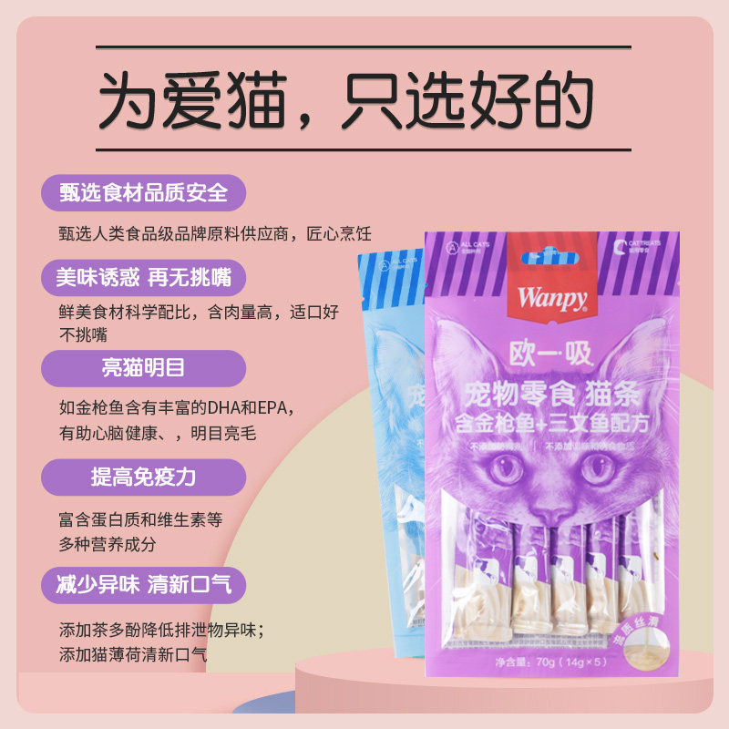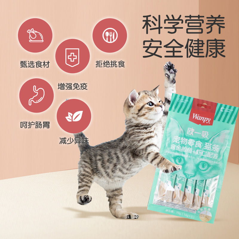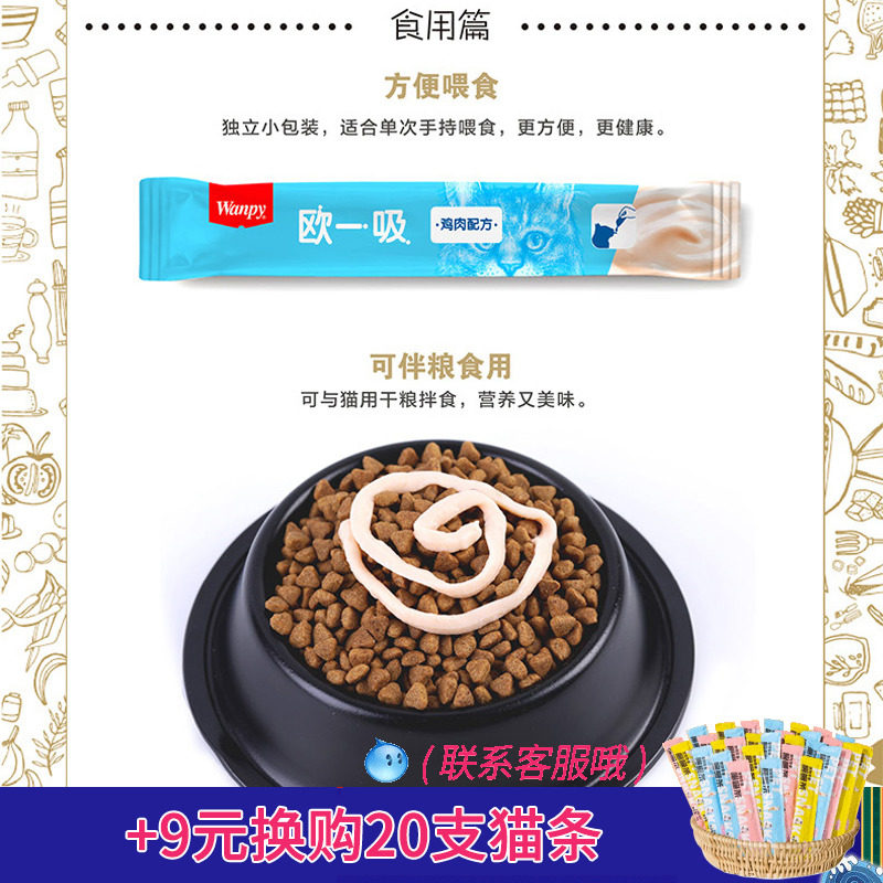 欧一吸猫条顽皮猫零食100支流质猫罐头wanpy成幼猫金枪鱼鸡肉虾仁