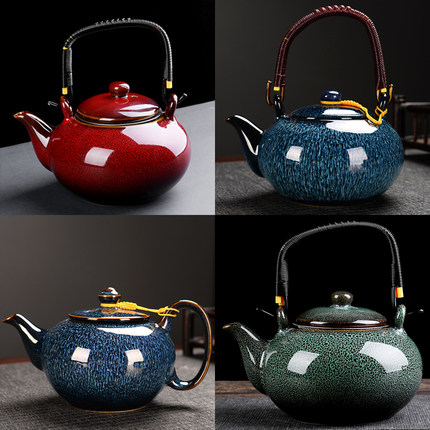 窑变家用中式简约办公室陶瓷泡茶壶提梁单壶餐厅饭店耐高温过滤网