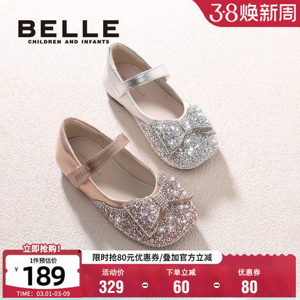 百丽童鞋女童宝宝鞋2024春秋新款小女孩公主鞋水晶鞋儿童水钻单鞋