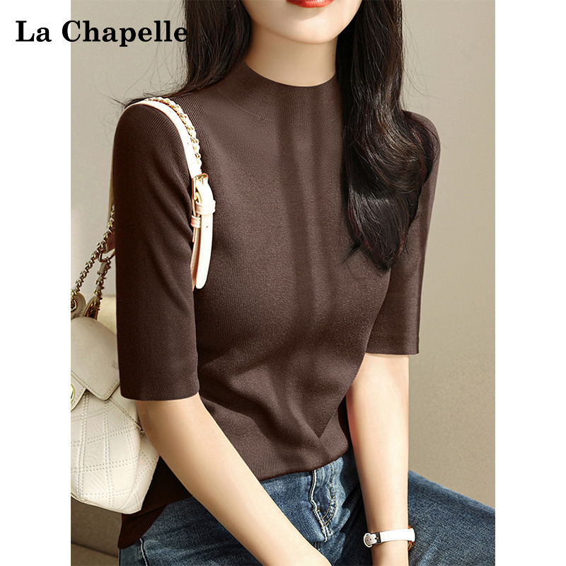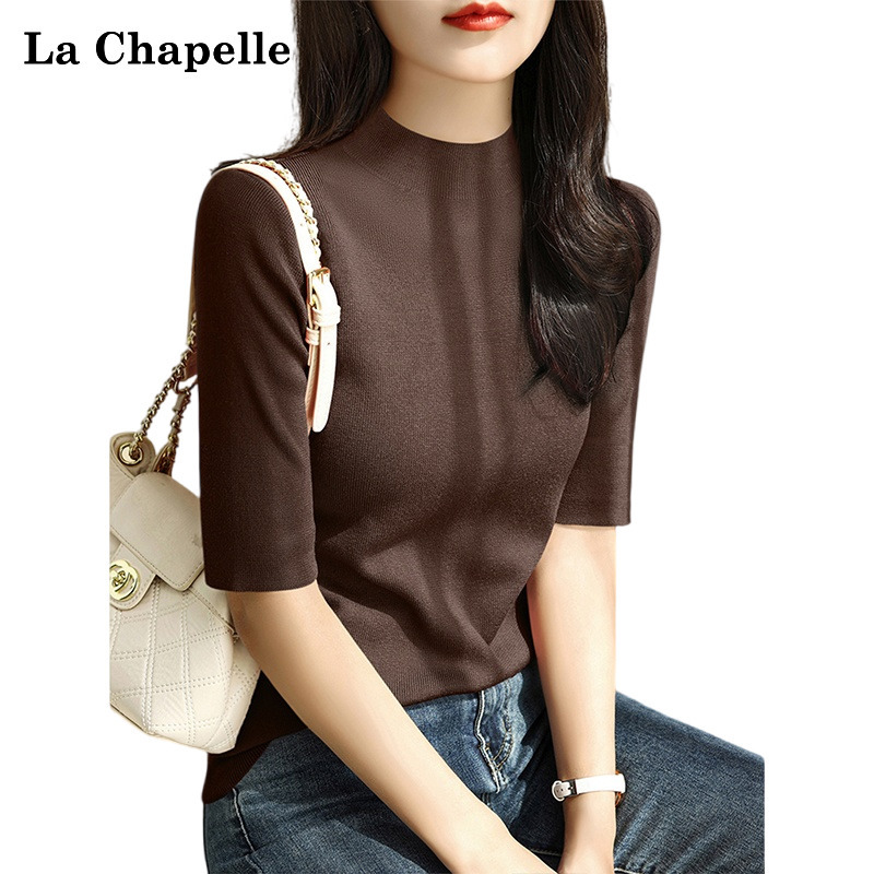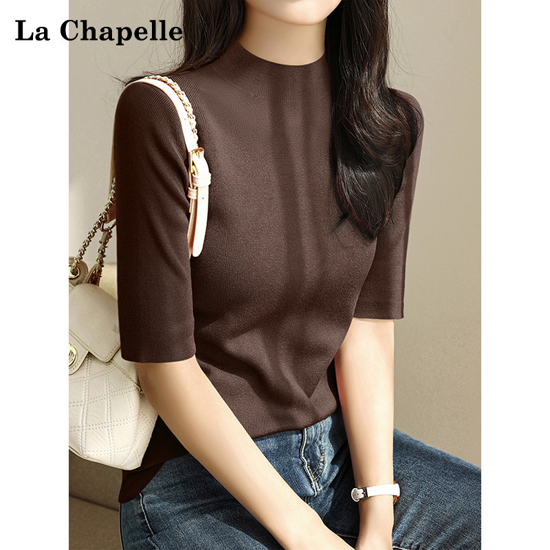 拉夏贝尔美拉德中袖打底衫女秋季修身小香风软糯内搭半高领毛衣