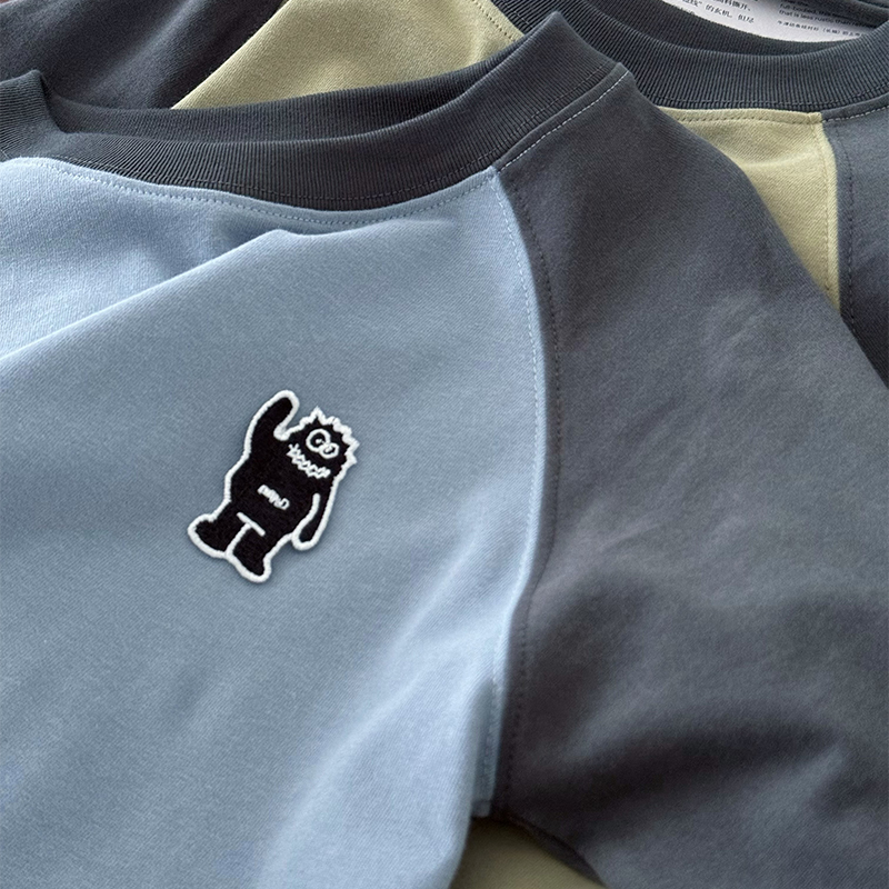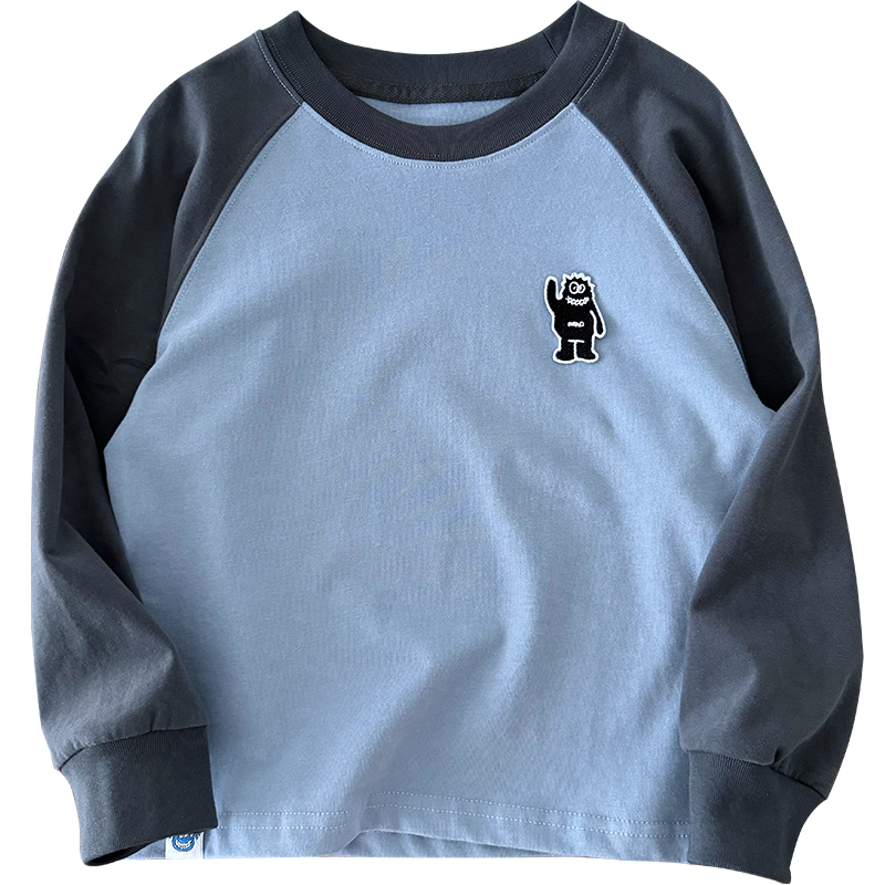 男童全棉插肩袖拼色T恤~中大童纯棉圆领长袖打底衫儿童上衣春秋款