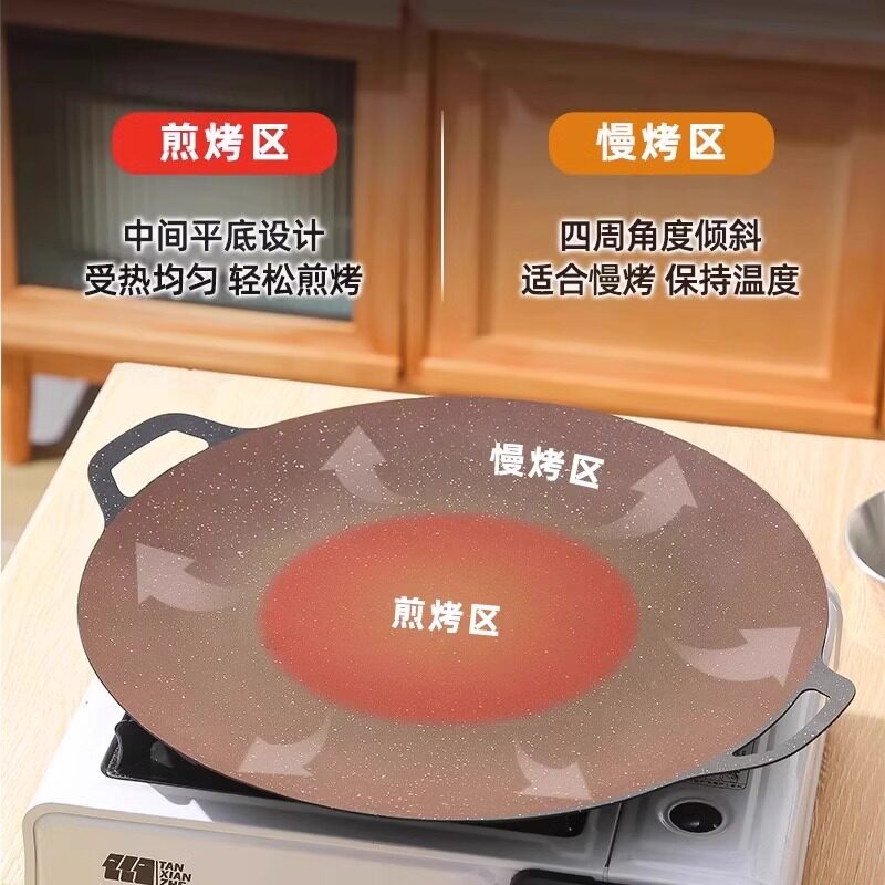 户外露营卡式炉炭火烤盘食品级不粘锅铁板烧盘厚烤鱼盘碳火煎烤盘