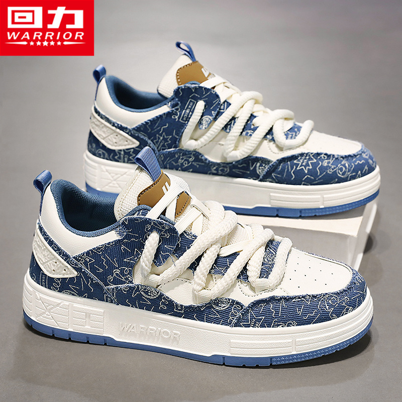 回力牛仔蓝帆布男鞋秋季透气休闲百搭厚底运动面包设计感小众板鞋