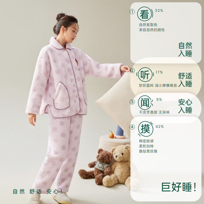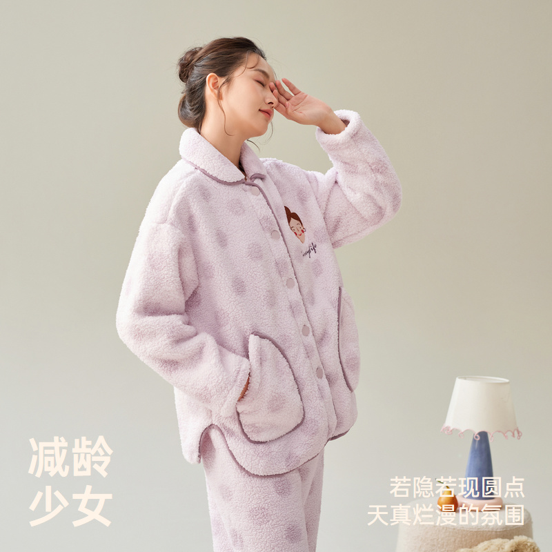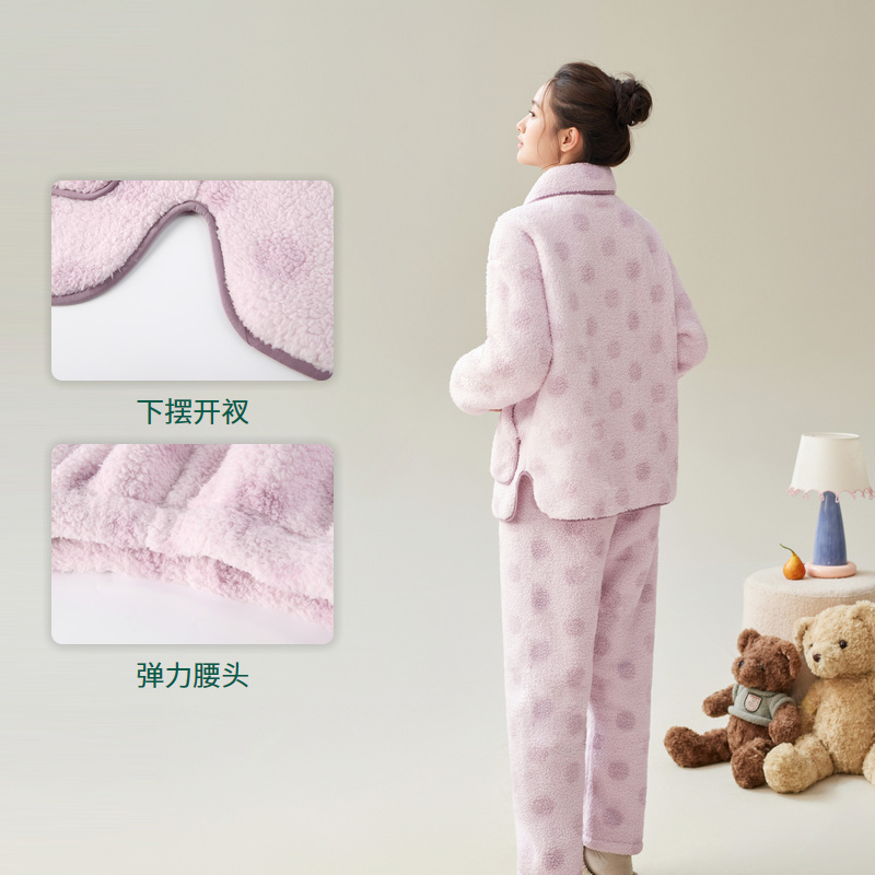 安之伴【巨保暖】北羔绒睡衣女冬季冬款加厚珊瑚绒开衫家居服套装