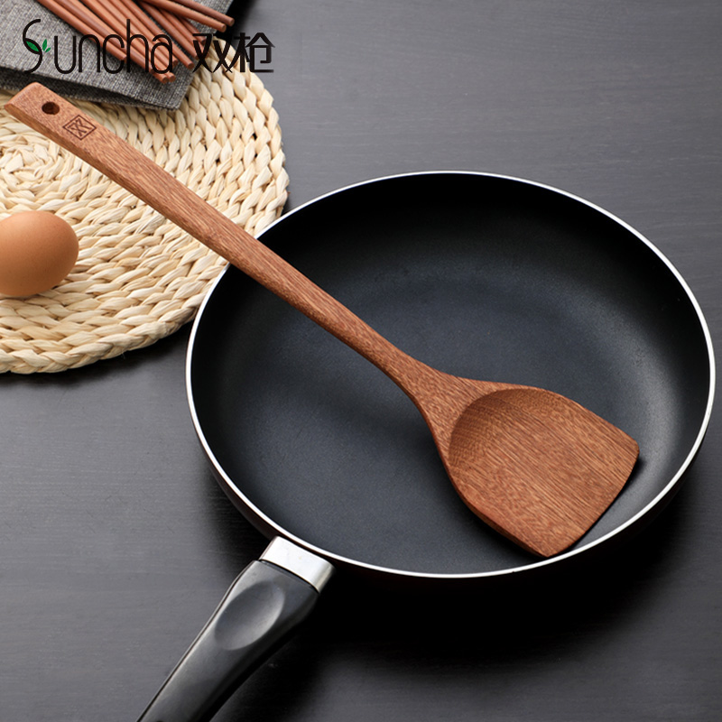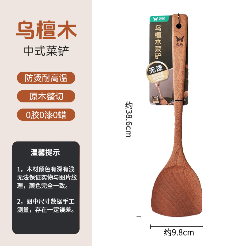 双枪木铲不粘锅专用无漆无蜡长柄乌檀木锅铲耐高温家用炒菜铲饭铲