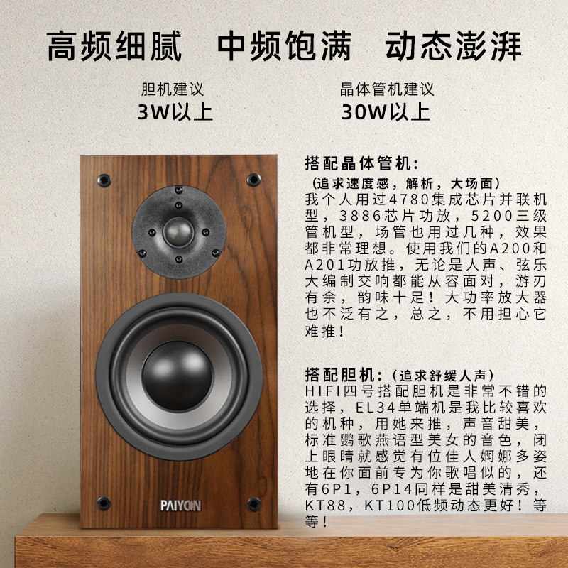 派扬 HiFi四号2.0无源音箱高保真发烧级6.5寸木质家用书架音响P4s