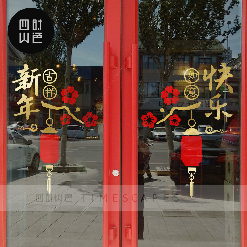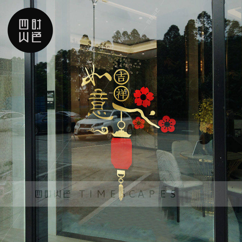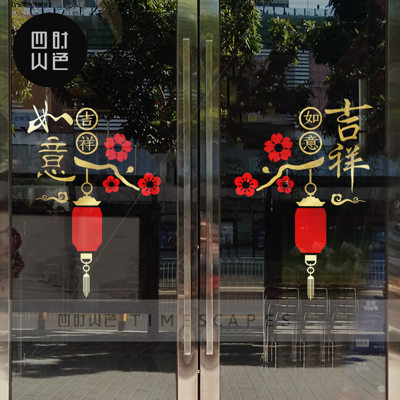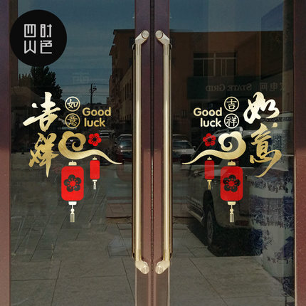 吉祥如意玻璃贴纸厨房阳台防撞贴创意中式灯笼喜庆窗花福字玻璃贴