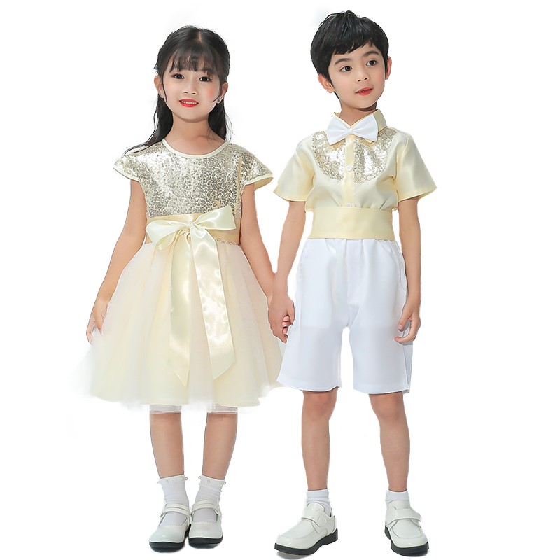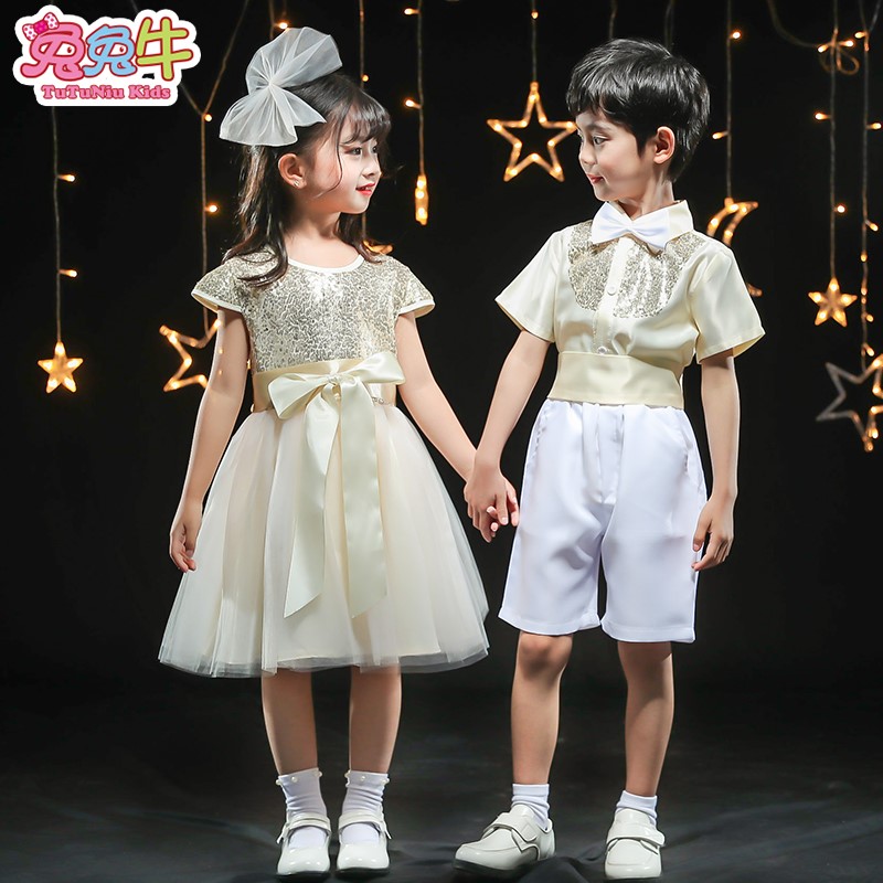 六一儿童合唱演出服男童女童亮片蓬蓬裙小学生大合唱朗诵表演服装