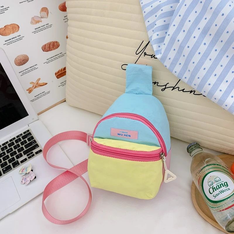 多巴胺旅游迷你手机包包撞色儿童外出斜挎包小书包学生日韩女百搭