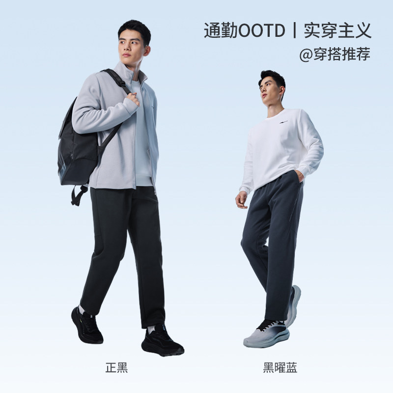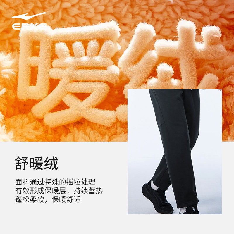鸿星尔克加绒运动裤男冬季新款男士加厚针织长裤直筒通勤休闲男裤