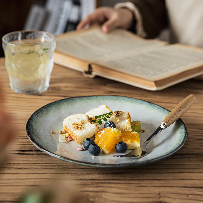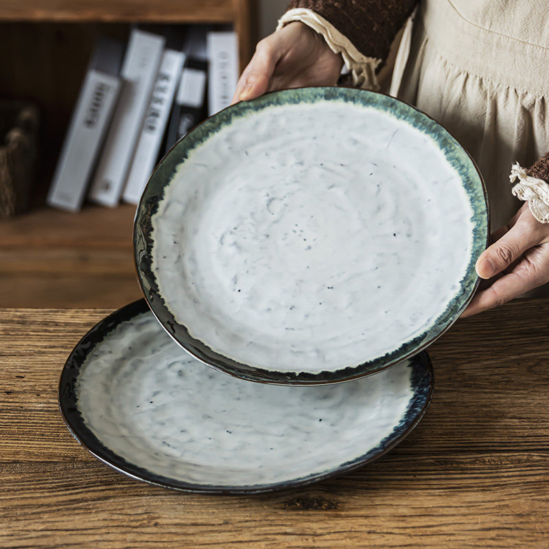 个性描边陶瓷浅盘窑变色高级餐盘摆菜盘日常待客水果盘烧烤烤串盘