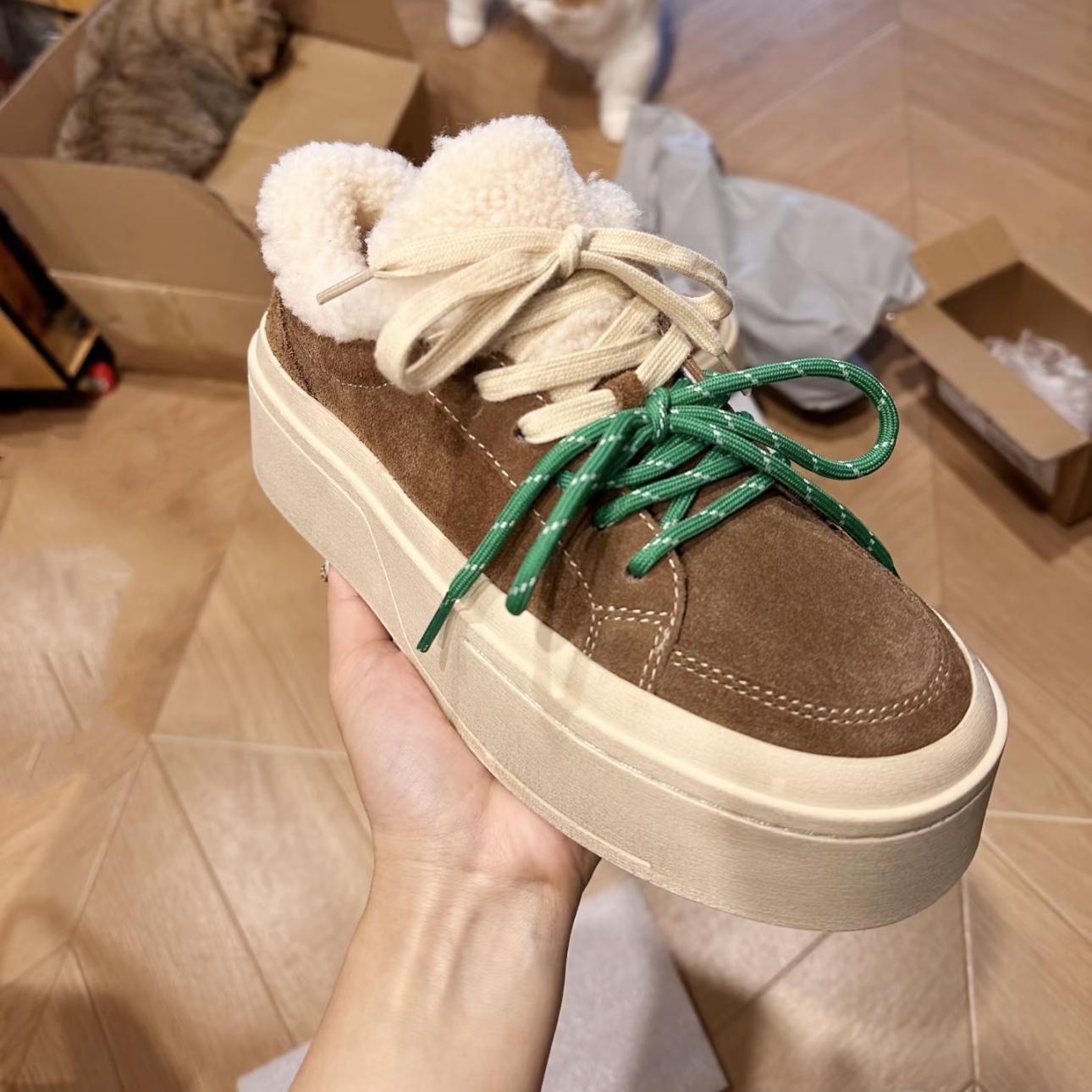 冬季羊羔毛毛厚底增高加绒帆布鞋