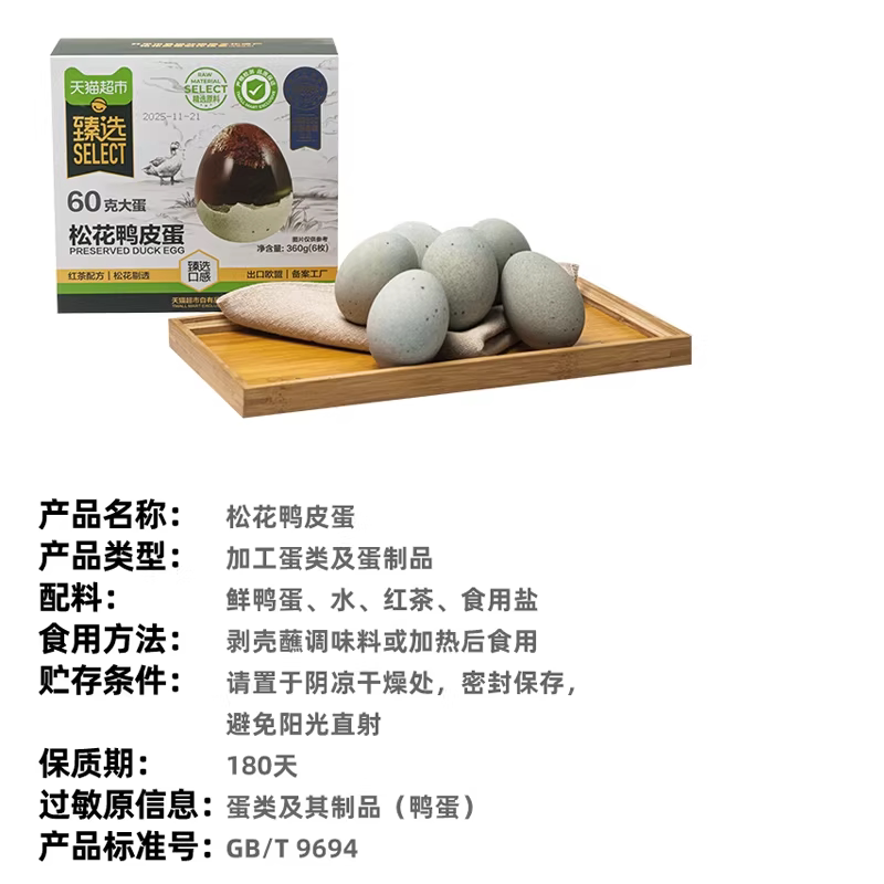 臻选 松花蛋皮蛋砂心特产鸭蛋60g*6枚