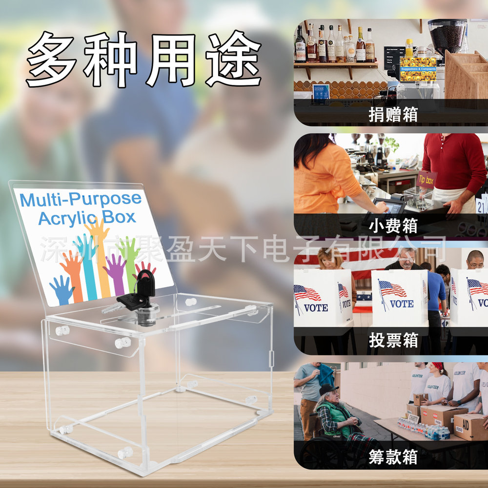 亚克力投票箱透明硬币邮票纸条收集盒便签零钱收纳箱配钥匙锁