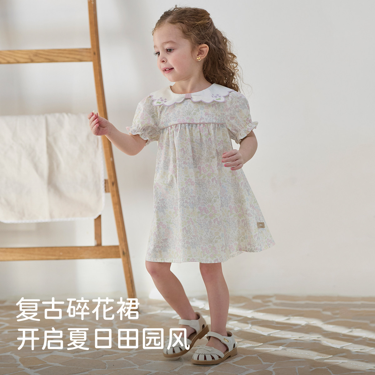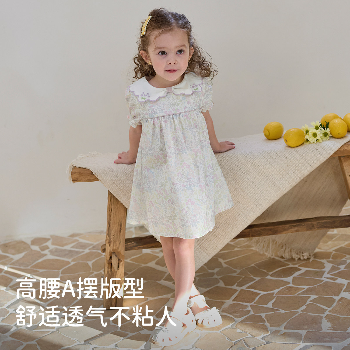 戴维贝拉儿童纯棉裙子2026夏装新款女童娃娃领公主裙宝宝连衣裙