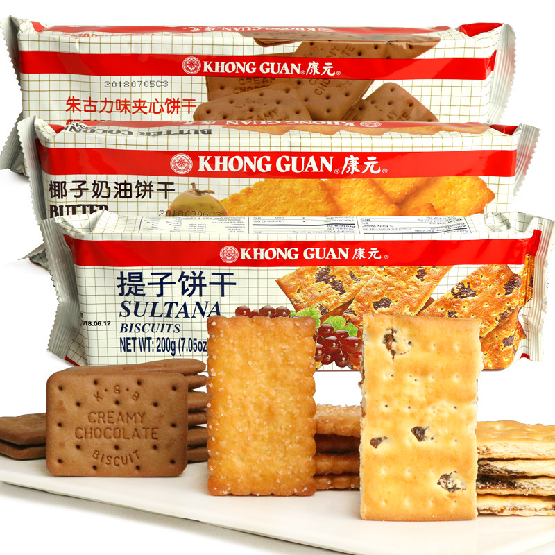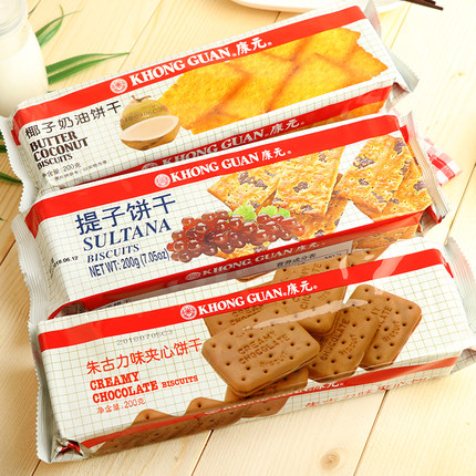 新加坡康元提子饼干200g 朱古力椰子奶油味饼干80后童年怀旧零食