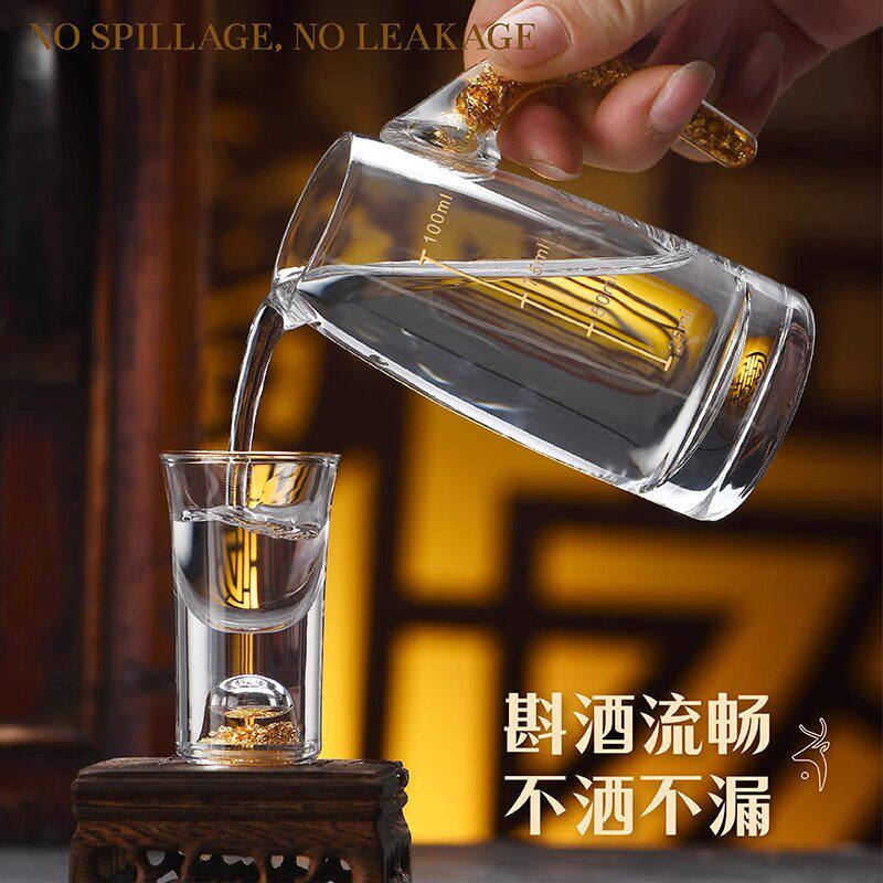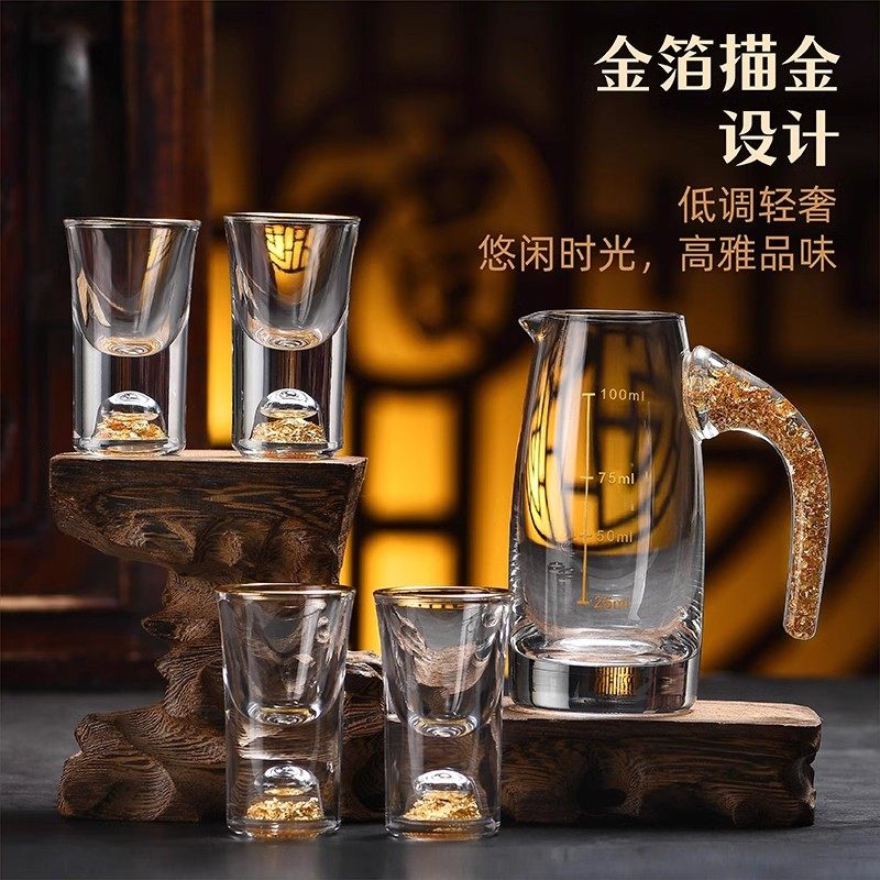 金箔白酒杯分酒器套装家用轻奢小号酒杯一口杯酒盅酒具带刻度